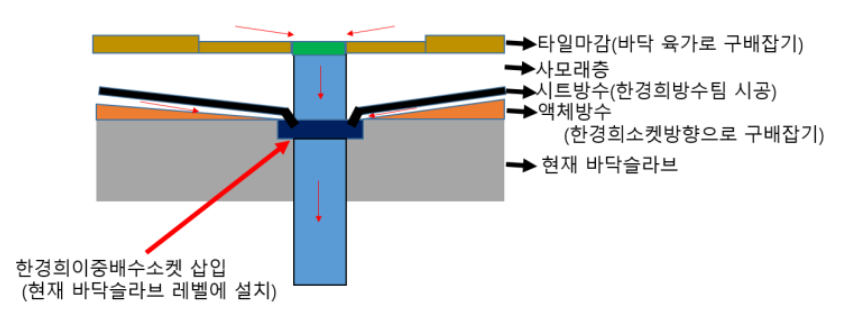 그리고 한경희 이중배수 소켓은 도막방수를 선호하는 콘크리트와 잘 맞지 않는 것 같아요. 몇 년 전부터 아파트에 사용되는 이중배수 전용제품이 이제는 소규모 시장에서도 구할 수 있으니 그 쪽을 한번 알아 보시면 도움이 되실 것 같습니다.