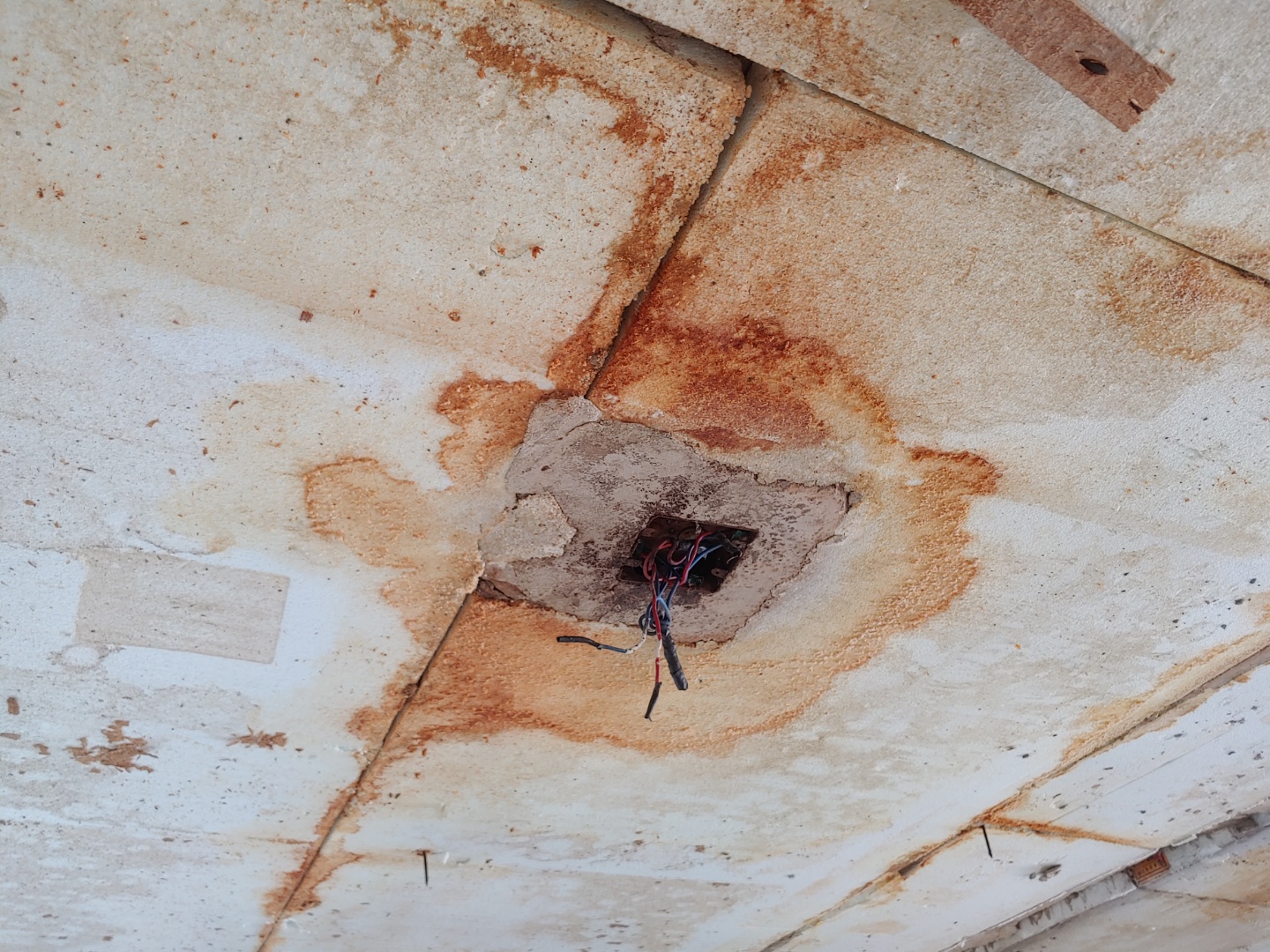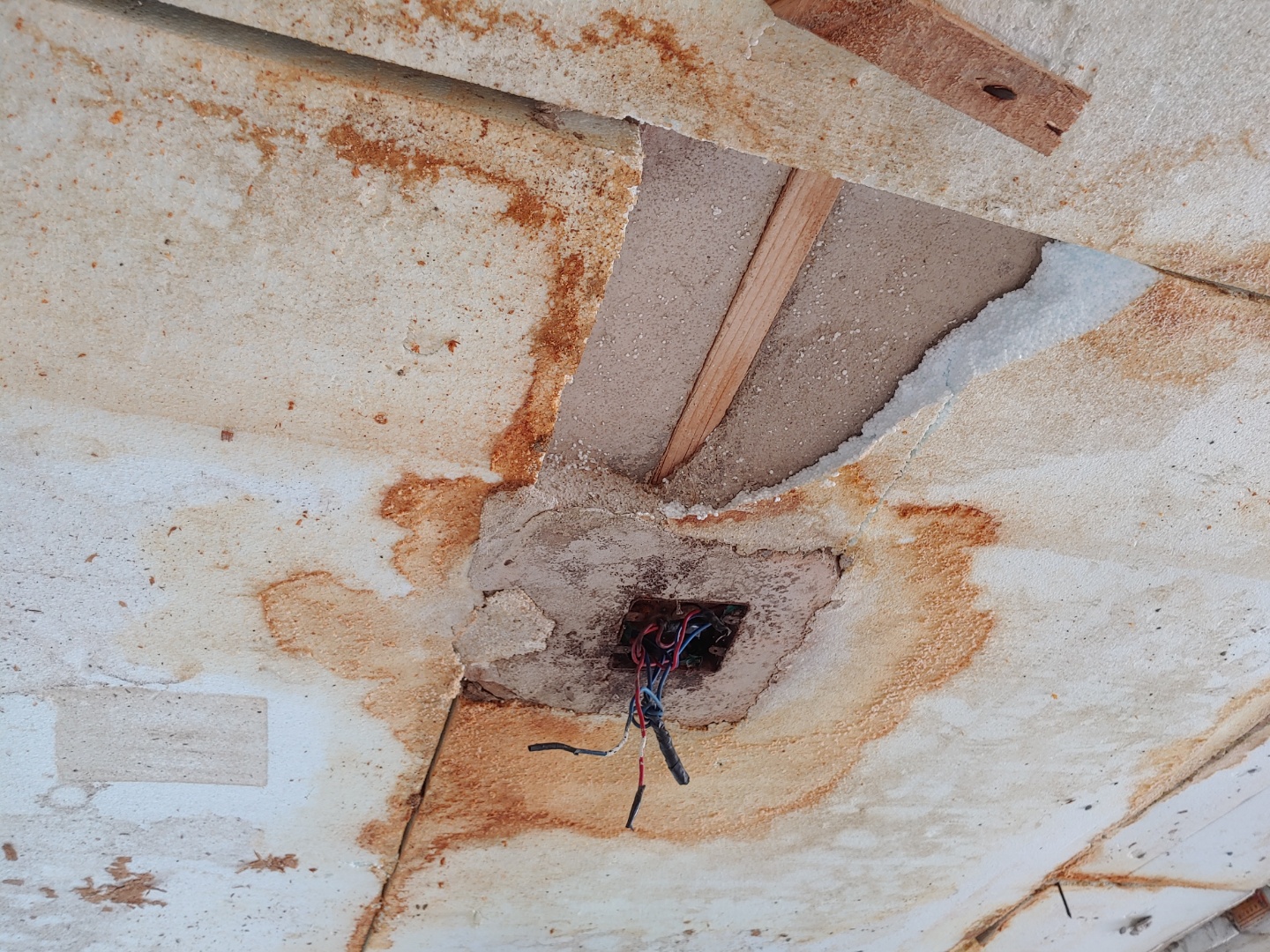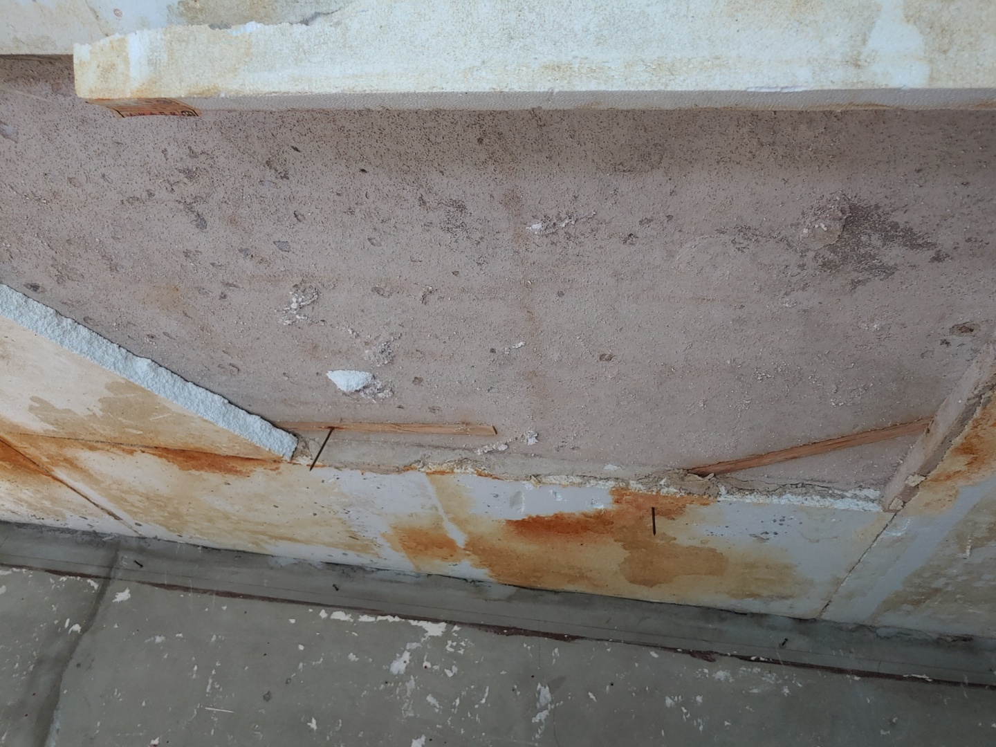 아래 올려 주신 사진을 보니... 천장의 단열재까지 모두 철거를 해보시길 권해 드립니다. 콘크리트 슬라브의 중성화가 꽤 진행된 것 같거든요.