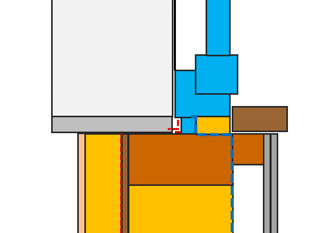 1. 상단부의 물끊기는 홈을 파는 것이 유효하기는 하나, 꽤 손이 많이 가는 작업입니다. 그래서 그 보다는 상단면을 창문 쪽으로 올라가게 약 2% 정도 경사를 두는 것을 권해 드립니다.