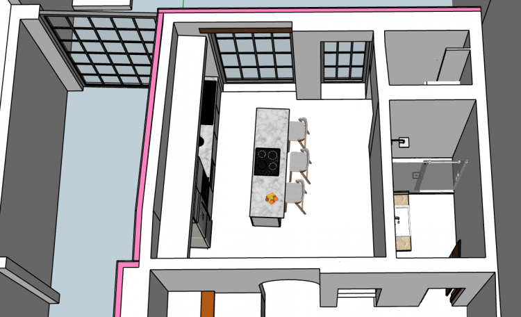 2. 스케치를 보시면 처음사진의 오른쪽으로도 벽이 이어집니다. (기본적으로 오른쪽 부분이 원래 집의 구조이고 왼쪽의 주방부분을 콘크리트 I빔과 H빔을 놓아서 확장한 것으로 저는 이해했습니다.) 이런 경우에도 오른쪽 창문의 사이즈 확대가 구조적으로 안정성에 부담을 준다고 봐야할까요?