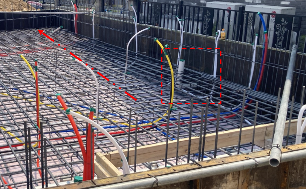 *도면에는 아래 화살표와 같이 바닥에 매립되게끔 표시되어 있으나 불필요하다 판단했다고 합니다