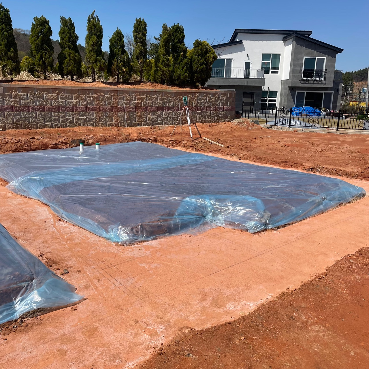 지금까지 콘크리트 타설전에  비닐(pe 필름)을 깔아 습기를 차단하거나,  타설하는 콘크리트의 수분이 빠져나가는것을 막아주고 있습니다.
