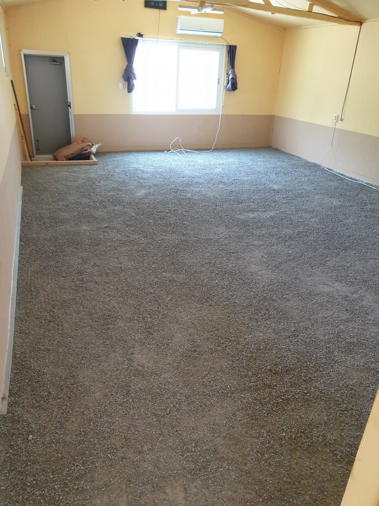 시멘트 몰탈위에 석분을 깔아서 어느정도 평탄화 하였습니다.