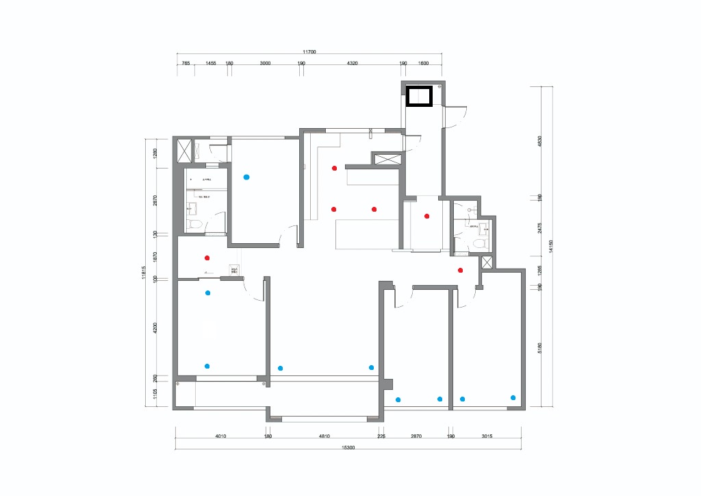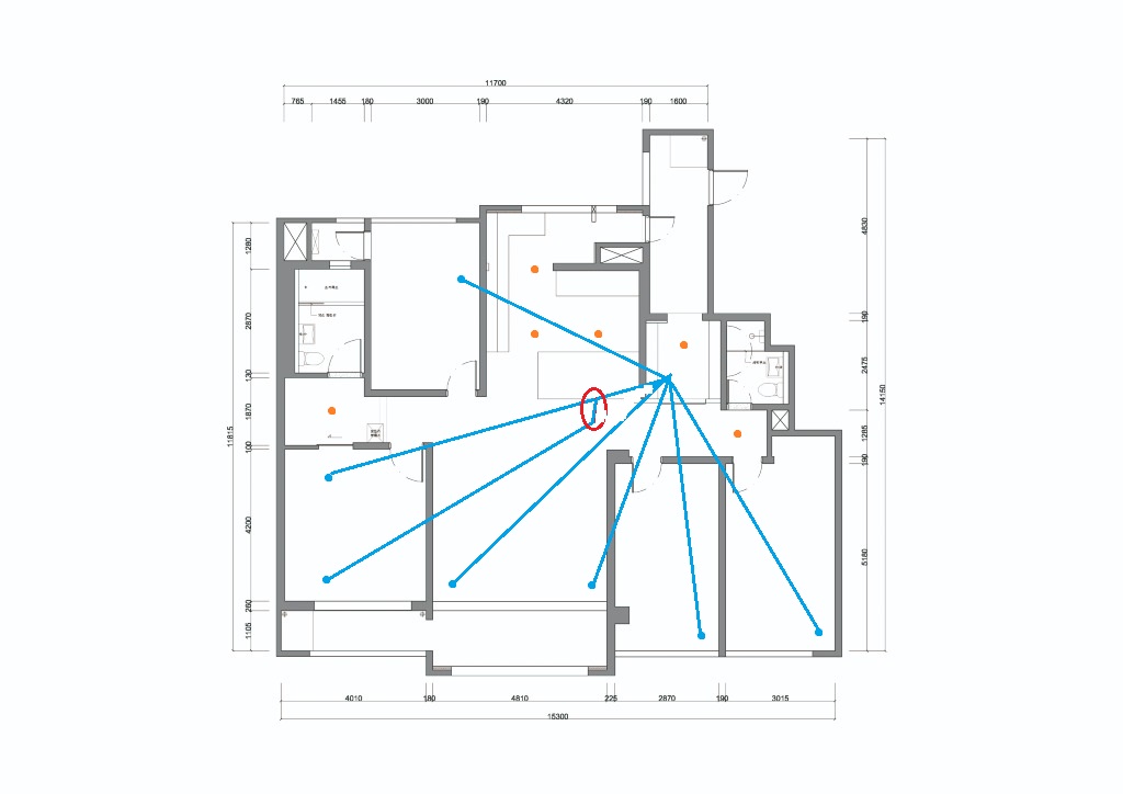 2. 천장높이 때문에 거실 화장실 왼쪽 전실(빨간 점찍어주신 곳) 근처에 분배기를 놓을까 하는데 괜찮은 위치인지요?