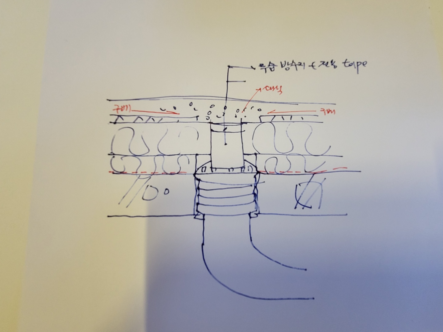 드레인을 타설시 미리 설치하고 방수후 뚜껑(캡?)을 끼우면