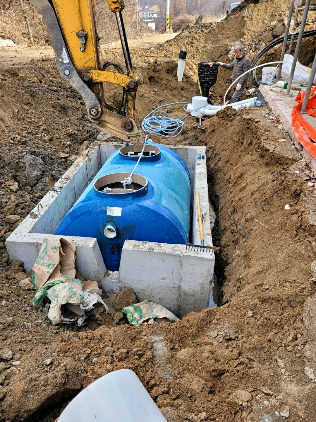 정화조 업체에서는 밀어내지 못한 것으로 보아 배관에 역구배가 걸린게 아닌지