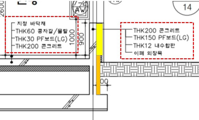 이 도면에 있는 PF보드-내수합판-이페외장목 은 괜찮으나, 나머지 부분은 외단열미장마감(스토제품)인데요. (업체는 된다고 하겠지만...) PF보드에는 외단열미장마감이 되지 않습니다.