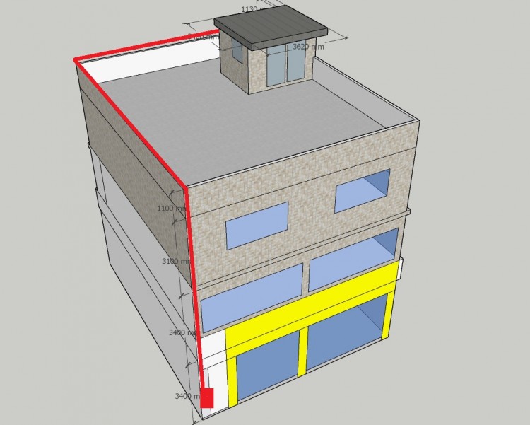 사진의 상황을 봤을때 본문의 계획이 잘 납득되지 않습니다. 옥상의 파라펫 상부를 따라 인입될 필요가 없다고 봅니다.