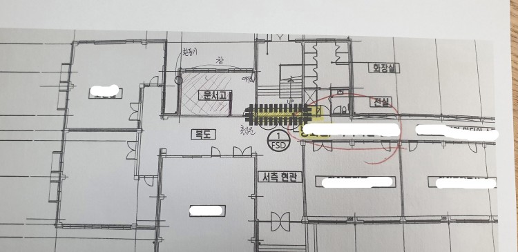 2. 출입구쪽 바닥 보다 문서고 바닥이 25cm 정도 낮음