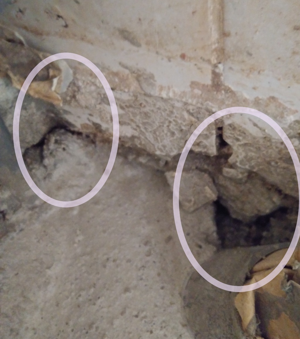 시멘트 몰탈로 틈새를 모두 채우고, 면을 다시 잡아야 합니다. 그리고 방수는 그 다음의 이야기이고요.