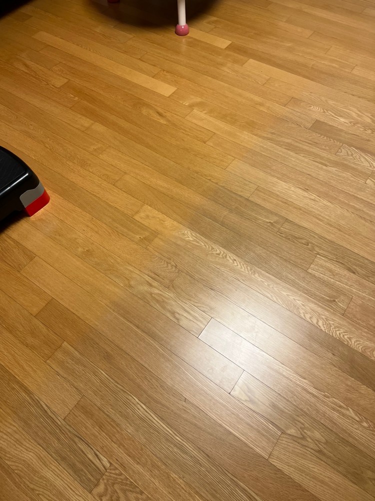 신축 첫입주하여 4년살았는데, 거실 온돌마루가 사진과같이 변색되었습니다. 매트를 깔았던 자리같은데, 마른상태는 색상말고는 양호합니다.(변색된 경계부분의 도드라짐말고는 그냥보면 크게 문제되어 보이진 않습니다.)
