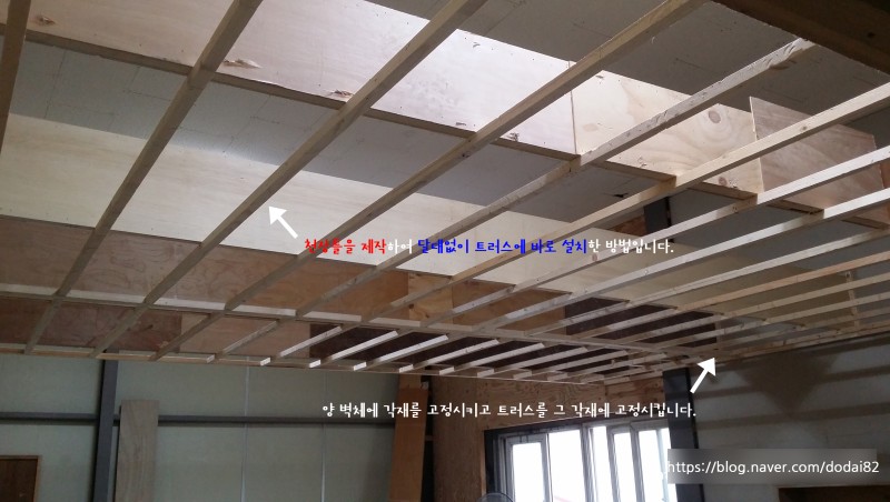 2. 아래 사진과 같이 달대없이 작업 : 양쪽 벽면이 모두 내벽이어야 함.
