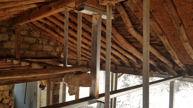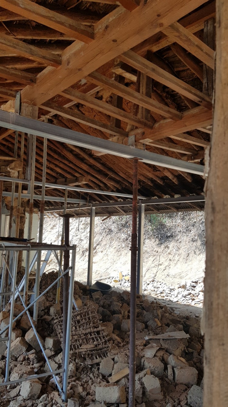 이 부분은 H빔이 개입 되던가 최소한 판넬집 처럼 트러스로 짜야 하는 행태이나, 한옥의 특성상 부재의 평활도가 다 제각각이므로 트러스도 맞지 않습니다.