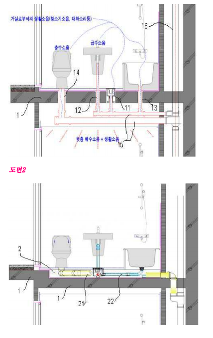 2번 그림의 문제점은 바닥배수관 형태를 유지한체 상상배관을 하기위한 온몸비틀기를 하고 있기때문에 벽배관형으로 조금만 틀어서 간다고 하면 기존 슬래브를 유지한채로 연결 가능하겠죠