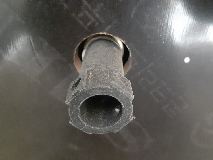 설비사장님이 수도배관 끝부분에 노란 신주와 임시로 까만 마개를 붙여 놓았습니다.