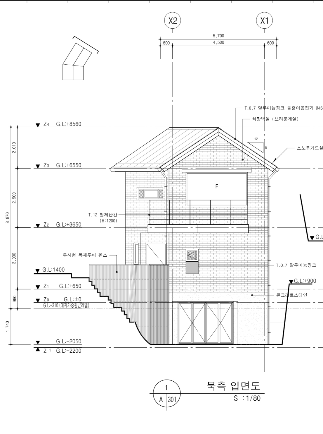 도면보면 파라펫 후레싱 위에 난간이 설치되어있는데.. 건축의악에서 이거 좋지 않다고 본적 있습니다. 후레싱에 구멍이 뚤리니.. 유럽처럼 ㄴ 자로.... 후레싱에 구멍이 안뚤리게....