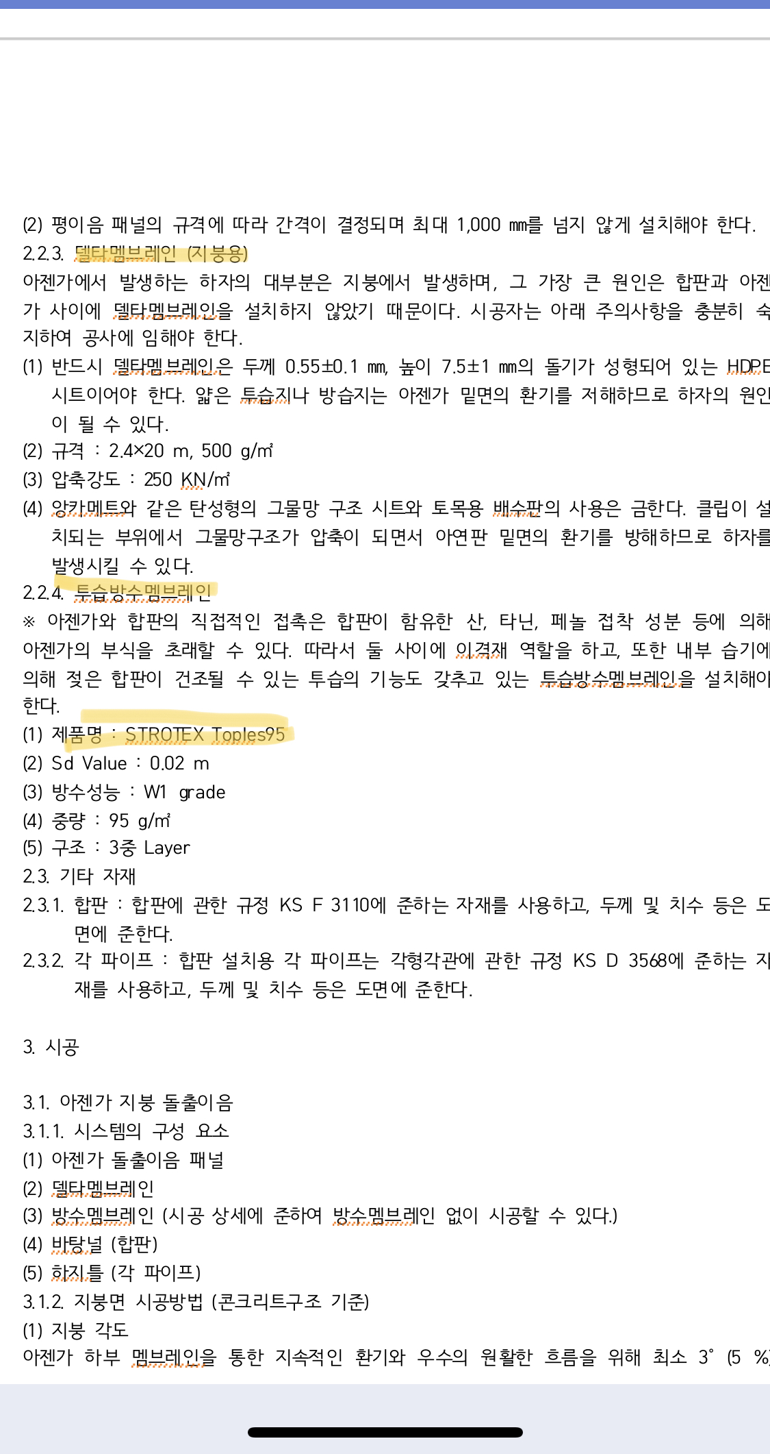다만, toples95 가 투습'방수' 기능을 포함하고 있으므로, T3 시트방수가 중복이라는 의미였습니다.