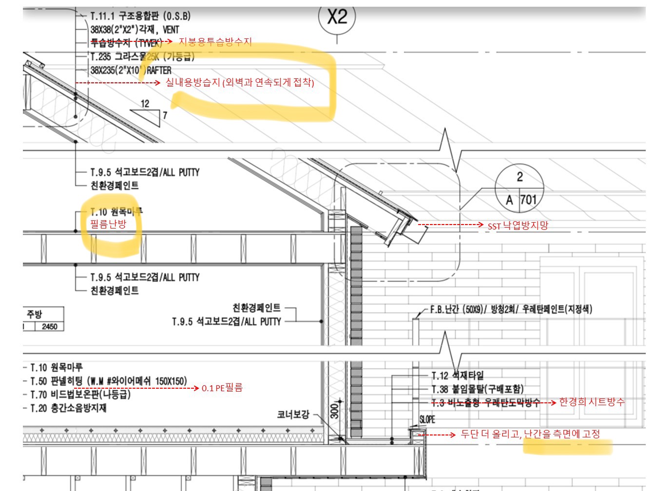 지금 지붕구성은 방수시트를 불필요하게 두 번이나 겹쳐놓은 것 같아서 좀 이해가 잘 안 되는 것 같습니다..