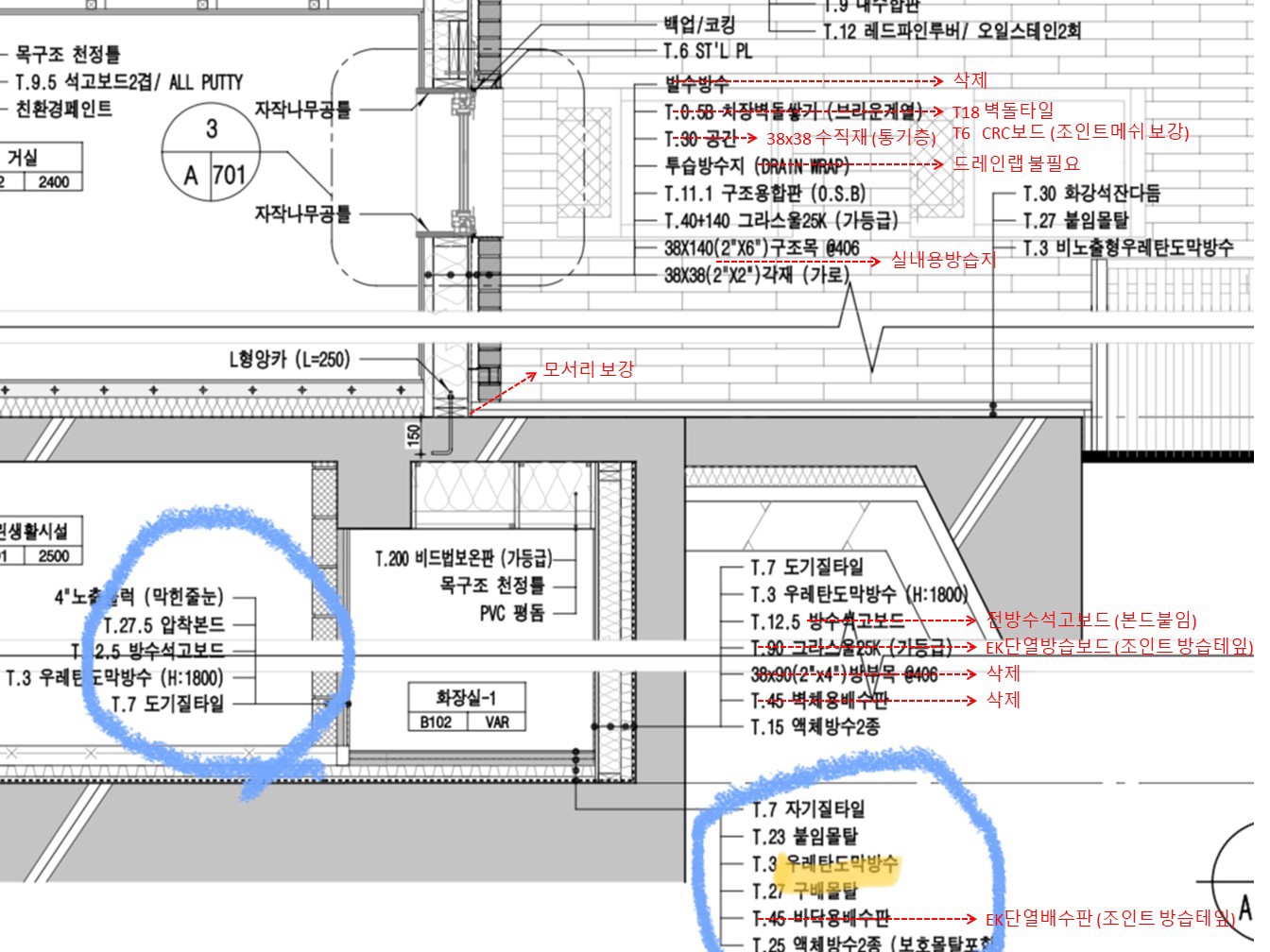 3) 위 도면 파란색 부분에 열교가 우려됩니다. 어떻게 차단할 수 있을까요?