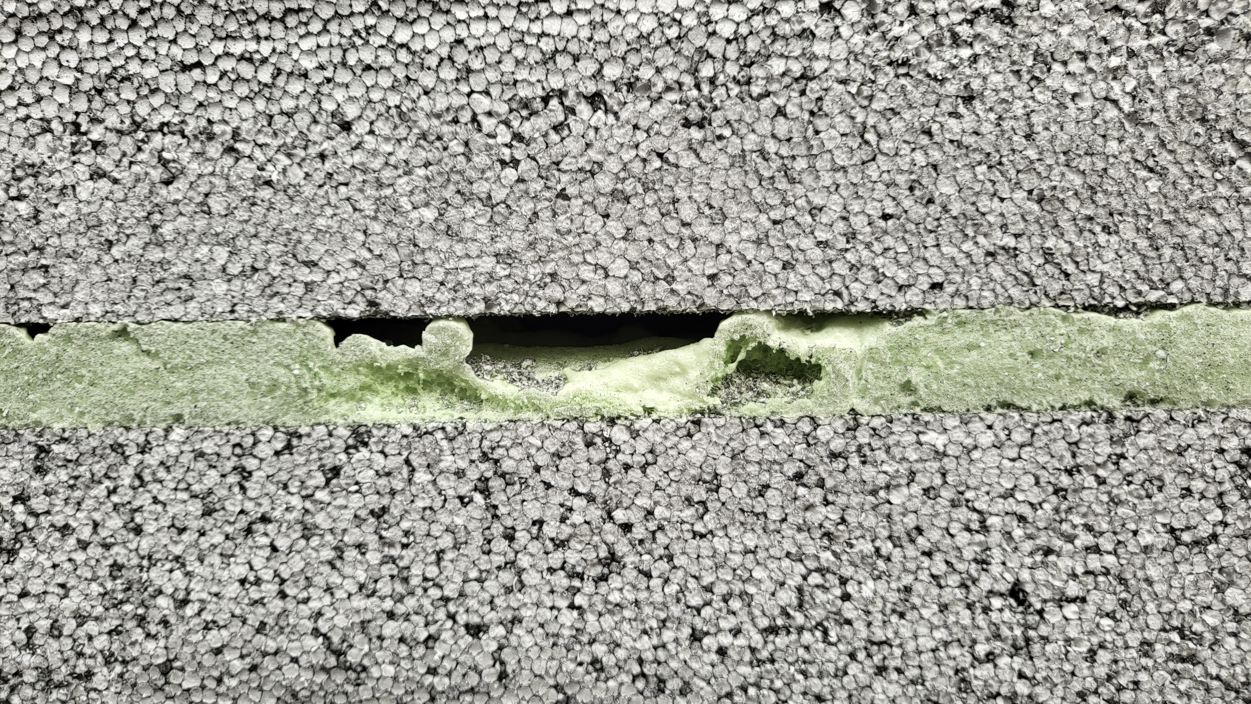 단열재 사이 꽤 넒은 공간을 폼으로만 충진을 했는데 잘라 놓으니 균일하지 않습니다