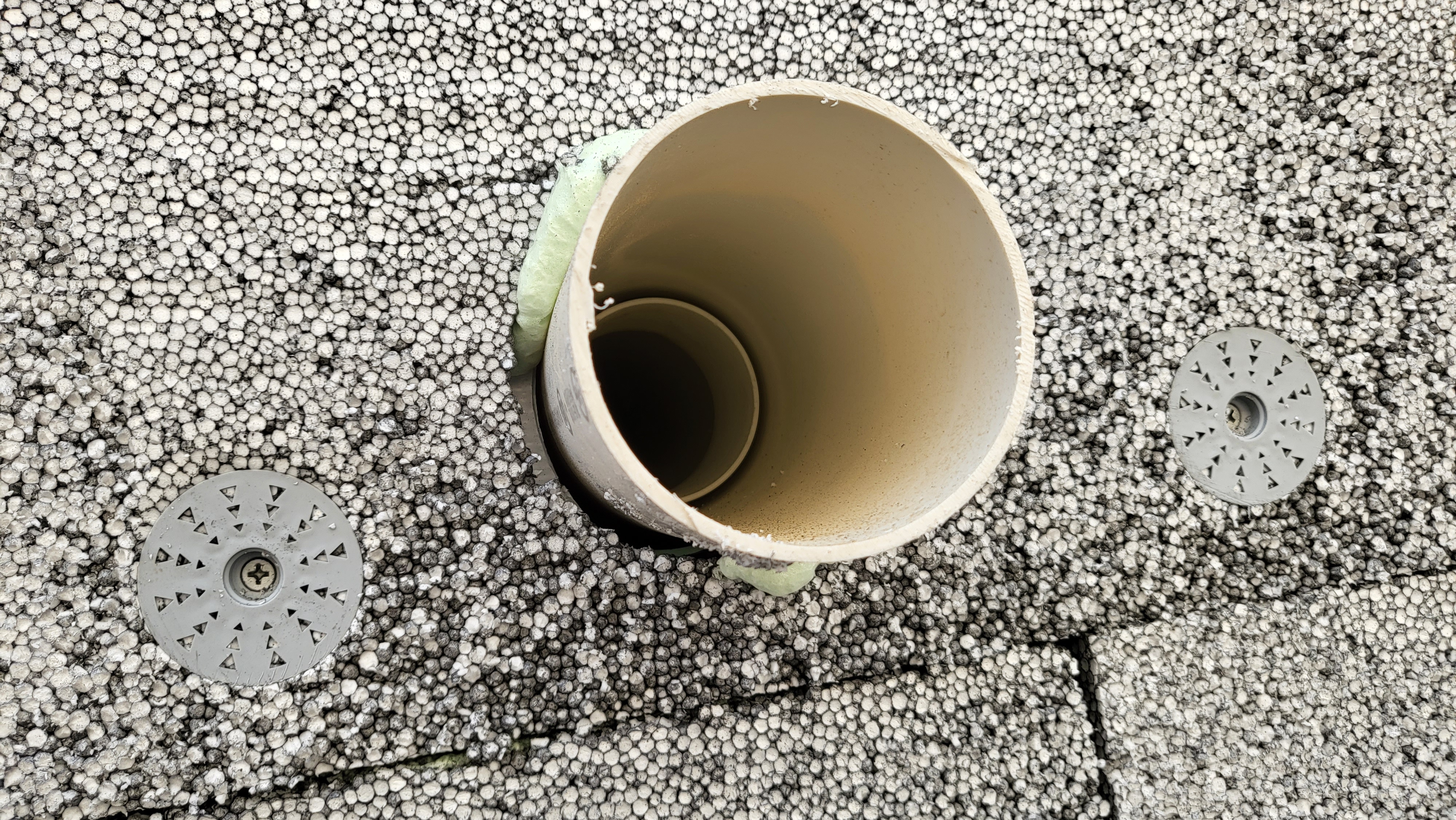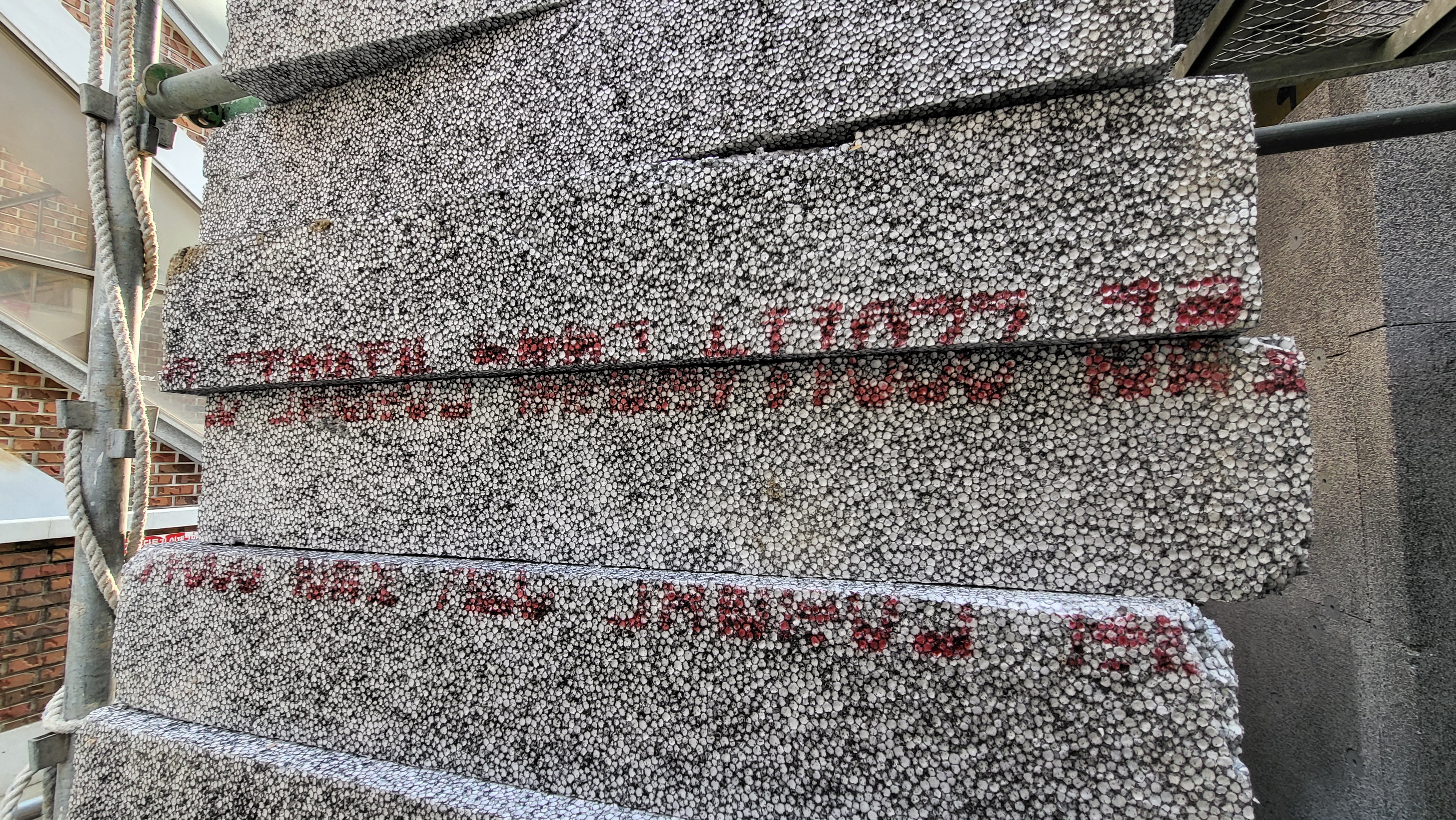 준불연단열재로 알고 있는데 일반 스트로폼 정도의 밀도에 검은 가루가 섞여있는 것처럼 보이는 정도의 단열재가 시공되었습니다.