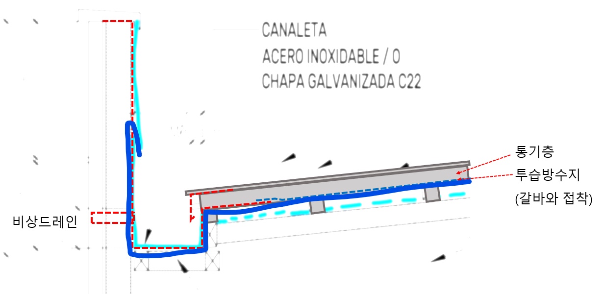 3. 투습방지는 전문적인 방수층이라 볼 수는 없습니다. 갈바하부는 전문 시트방수지가 들어가야 합니다. 다만 그 지역에서 생소한 제품이고 공법이라면 차선으로 투습방수지를 깔 수는 있습니다.