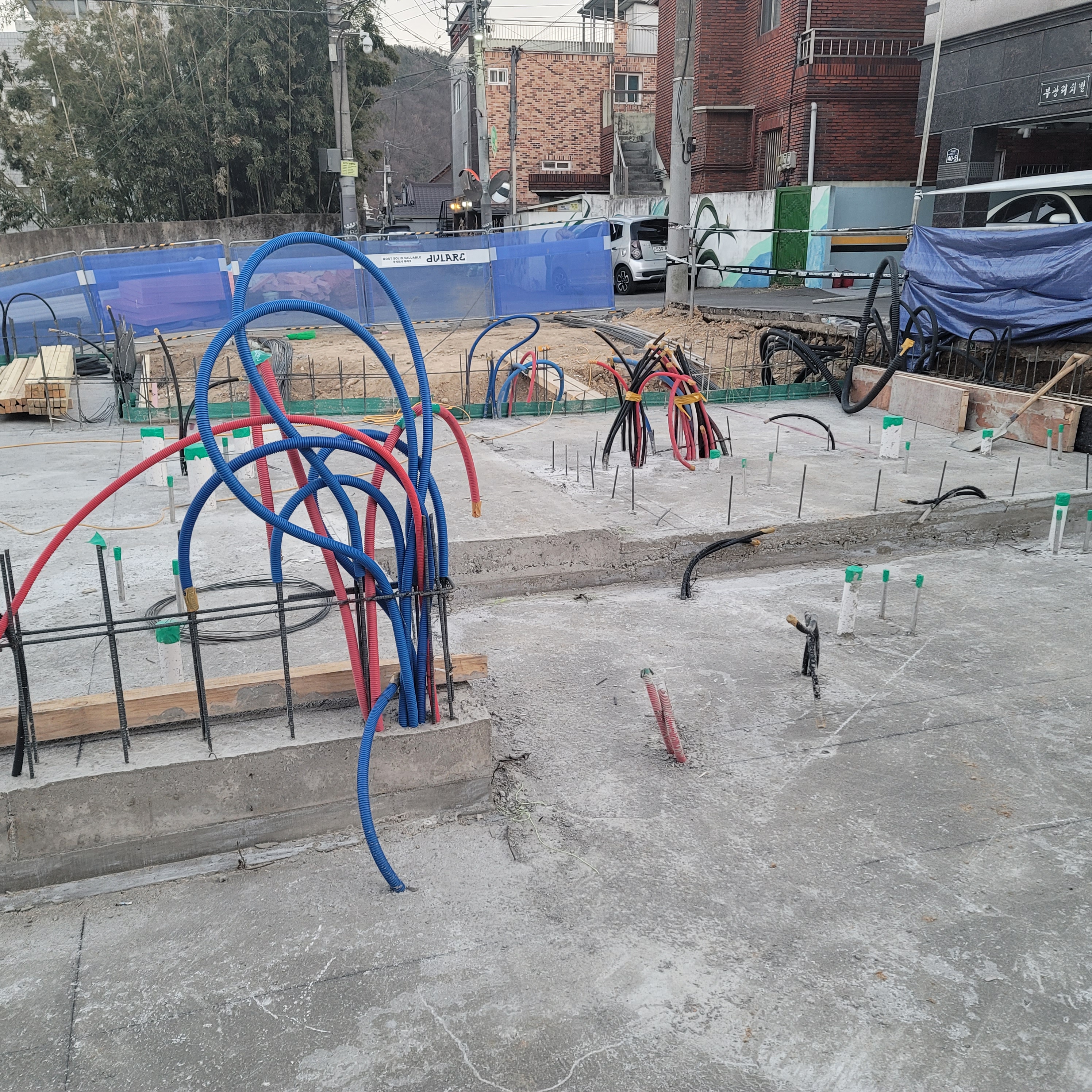 현재 기초콘크리트 타설 완료 되었구요. 되메우기 작업까지 완료 되었습니다.