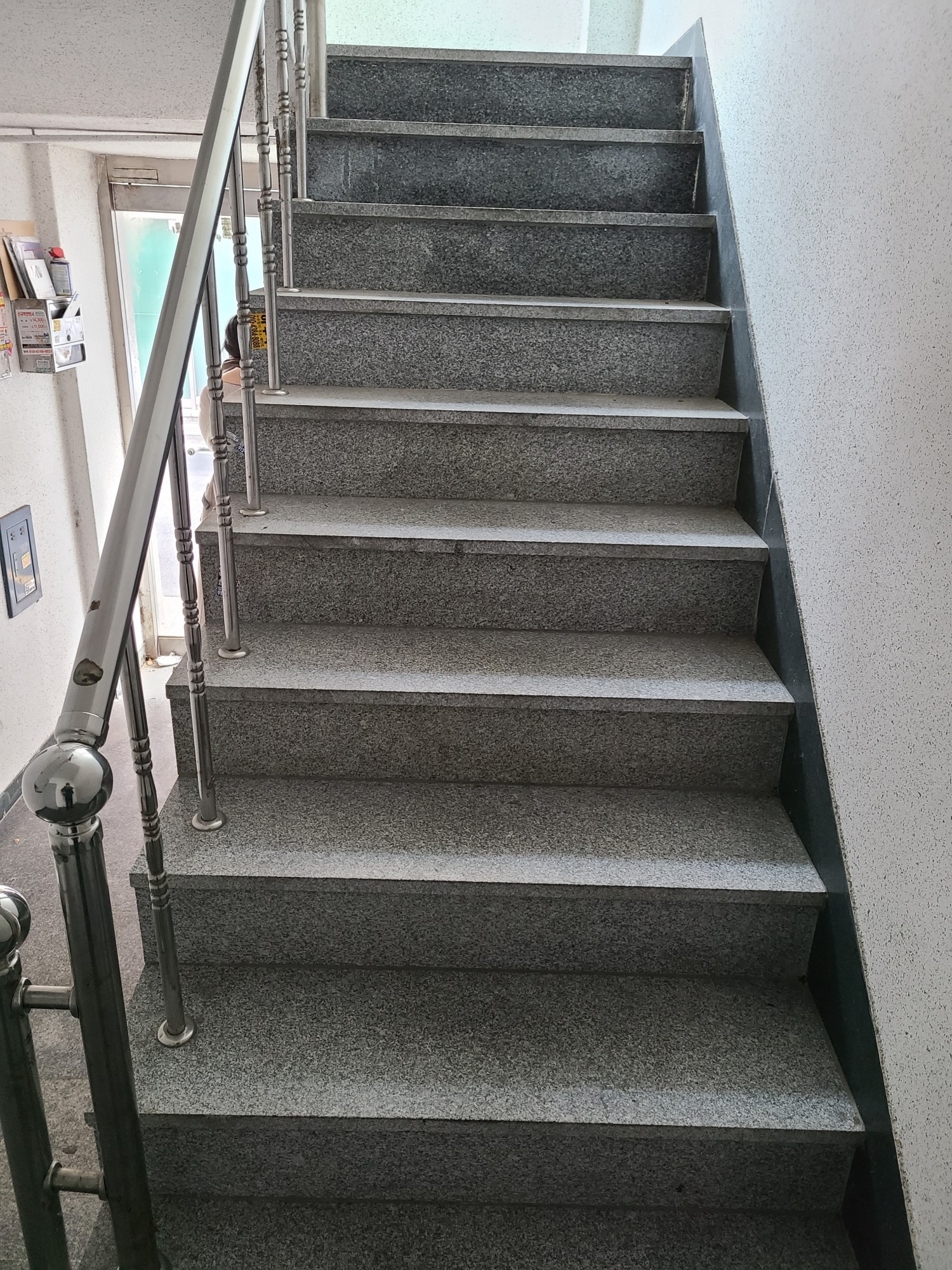 먼저 그 위에 타일을 붙게하려면 부착력이 우수한 접착재가 필요한데 '에폭시'가 가장 적정합니다만, 계단은 사람들의 통행이 많기 때문에 충격에 자칫 들뜰 수 있습니다. 다른 한 방법으로는 현상과 같은 매끈한 표면을 거칠게 갈거나 쪼아내어 부착 면적을 늘림으로써 부착력을 확보하는 것입니다.