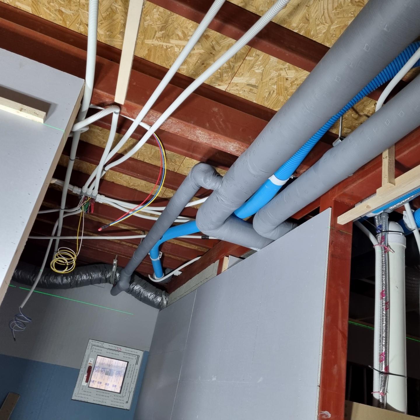 수평배관은 소음을 막고자 모두 보온재로 싸주었는데요
