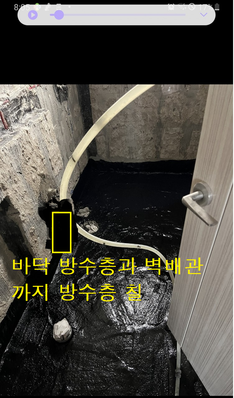 혹여나 저 배관부분에서 누수가 생길경우 벽에 방수층이 없으면 콘크리트쪽으로 스며드니까
