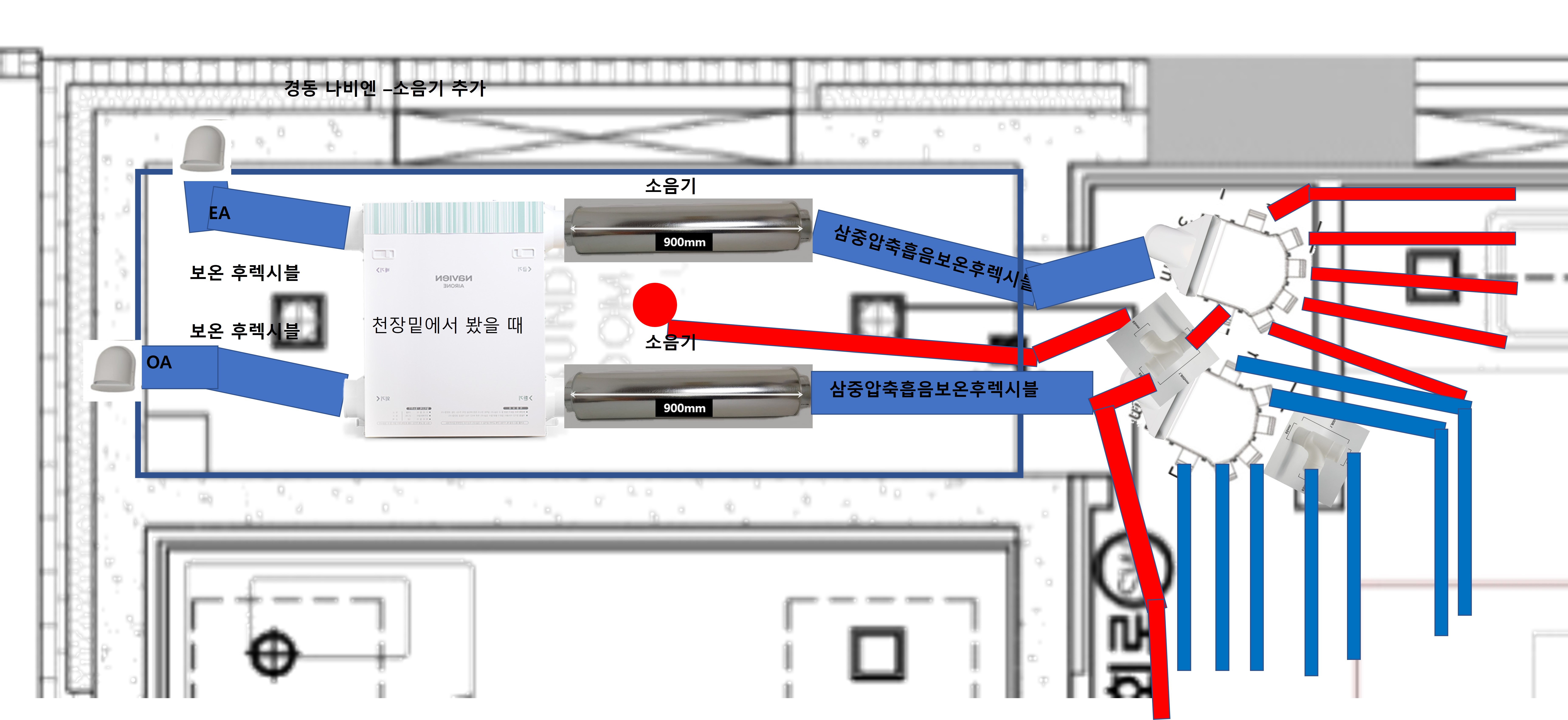 2. 세탁실의 폭이 좁아서 안될경우에는 전열교환기를 펜트리실로 옮길까 생각 중입니다만, 펜트리실 입구가 가구문형식으로 될것이라 소음이 걱정되는데 전열교환기 RA, SA에 소음기를 달면 좀 나을까요?
