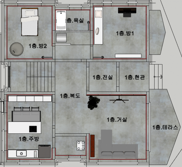 첨부 파일과 같이 주택 외벽을 따라 압출법 단열재로 단열 하고자 합니다.