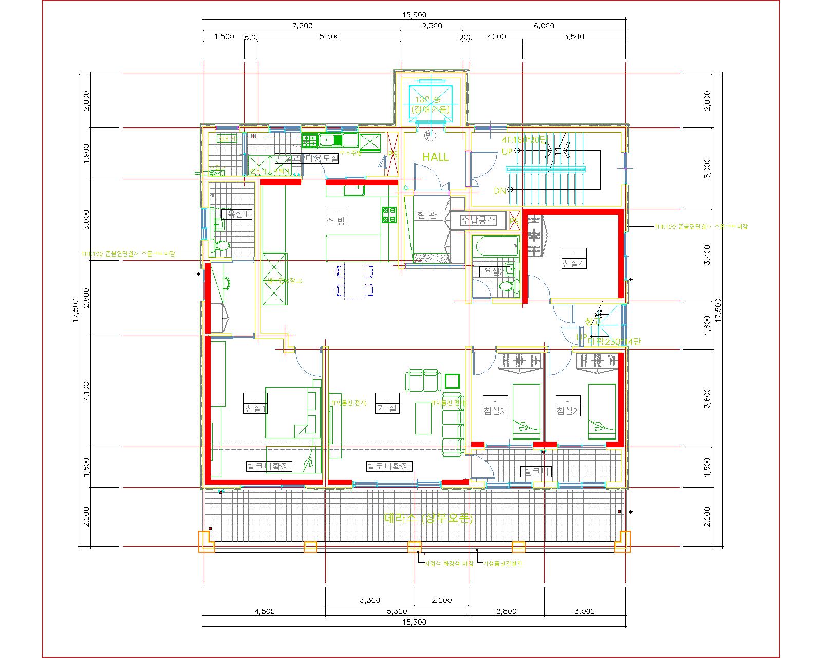(침실4 욕실벽체 위치가 잘못 타설되어 콘크리트 벽체 철거후 조적조로 재시공하였습니다)