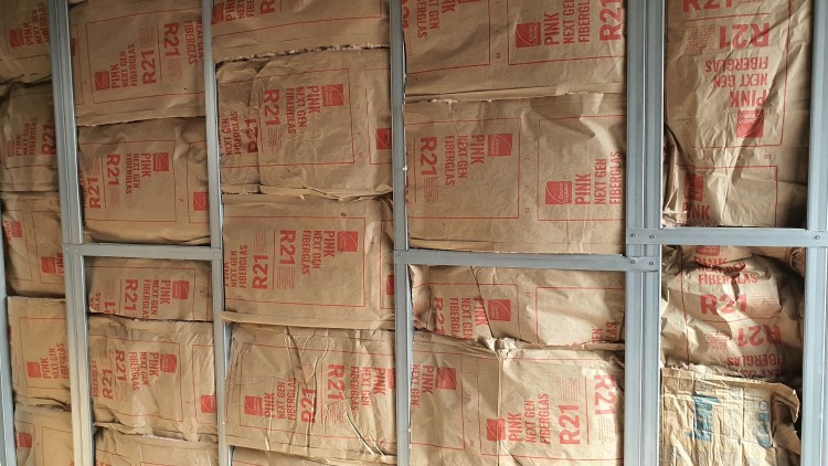 좁은 폭 글라스울을 가로 재단 사용했습니다.