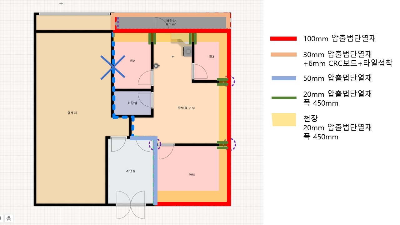 2. 다용도실은 거주 공간은 아니기에, 30mm 정도의 단열 공사만 되면 될 것 같습니다.