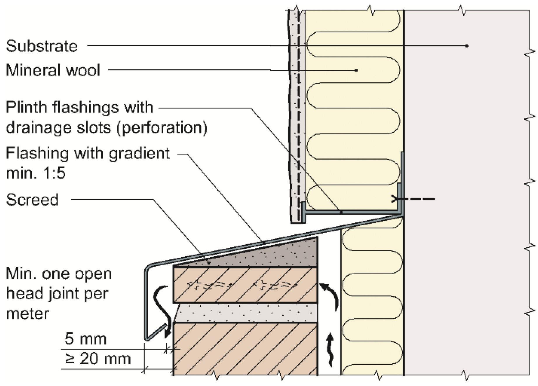 상부는 재료 분리대가 아닌, 방수 후레싱이어야 합니다.