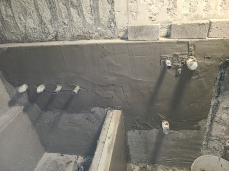 5. 관붙이 앵글과 파이프를 방수몰탈로 미장한다