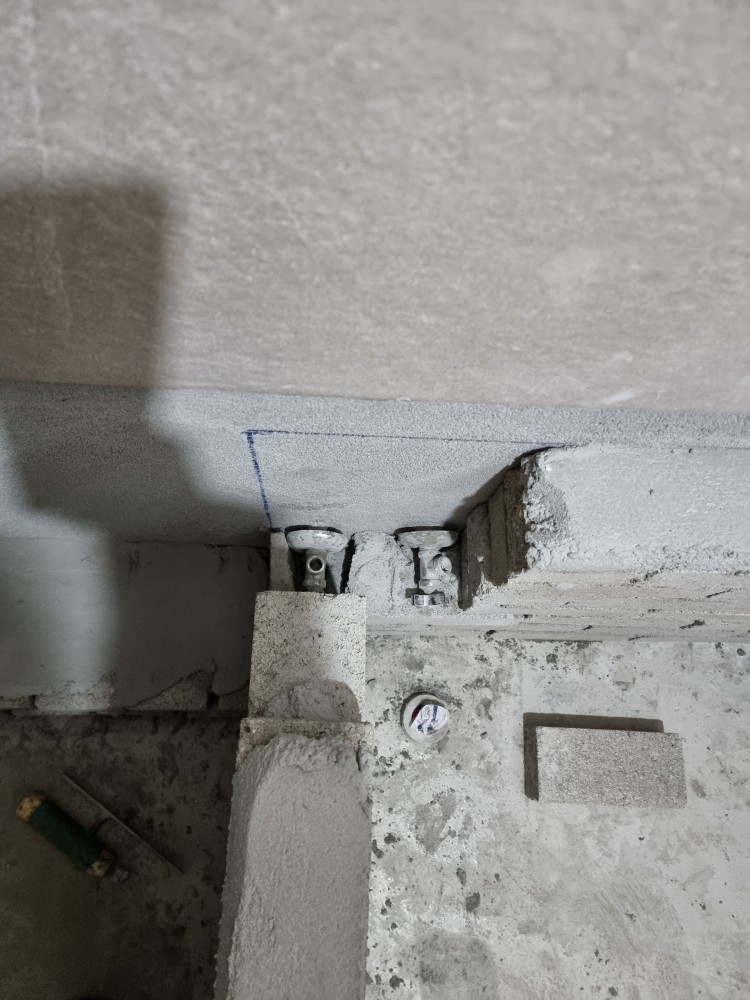 OR pvc분전함으로 관붙이 앵글(조적 욕조 마감부분) 겉을 감싸주고 분전함 위를 방수 몰탈로 미장 후 타일 마감