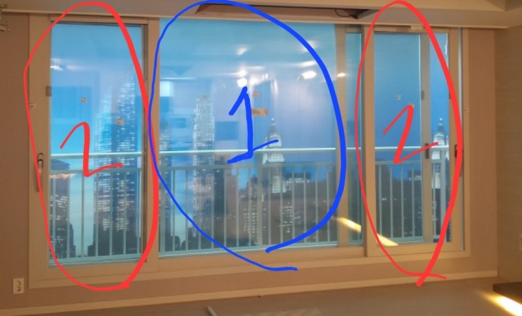 1. 철제난간을 모두 떼어내고 유리난간을 2번 슬라이딩 창호에만 설치 시 1번 fix창호 유리는 강화접합 유리로 변경이 되어야하는게 맞나요?