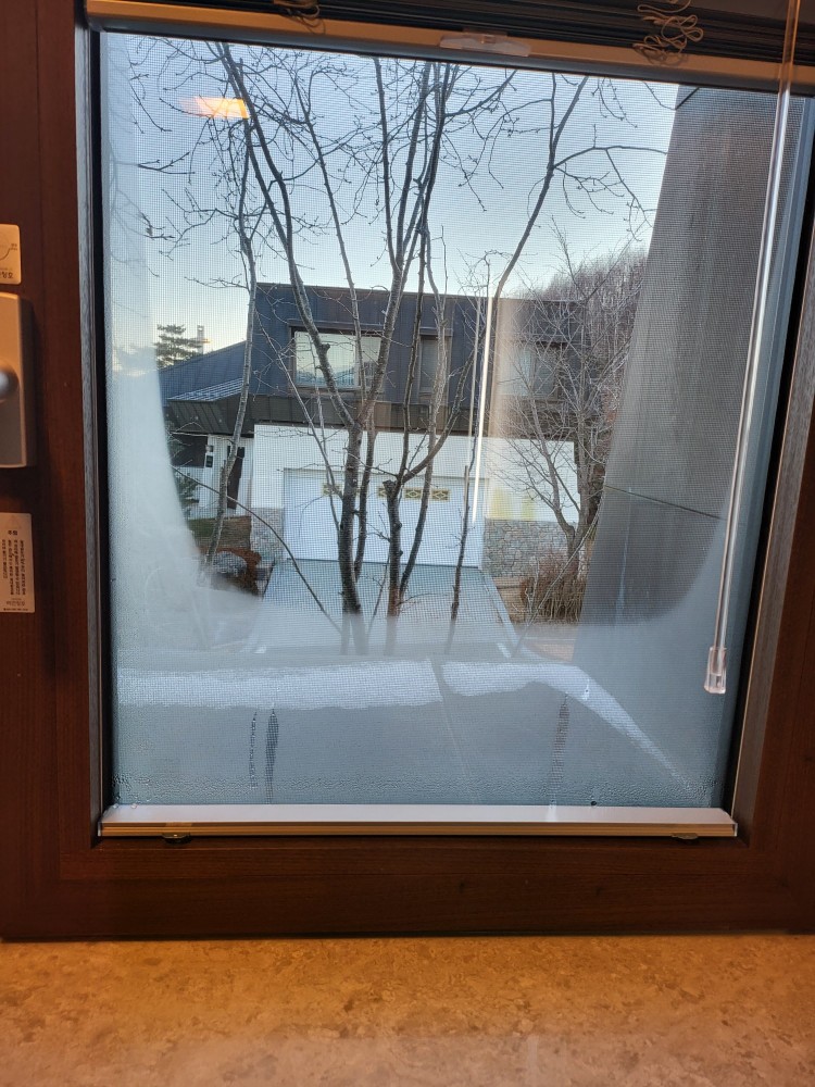 사진에는 2층 결로 사진만 있지만 1층은 이건 목창호이고 2층은 이건 스테인리스 창호로 알고 있습니다. 유리는 이중접합 로이유리+알곤가스+단열간봉 처리되어있습니다.