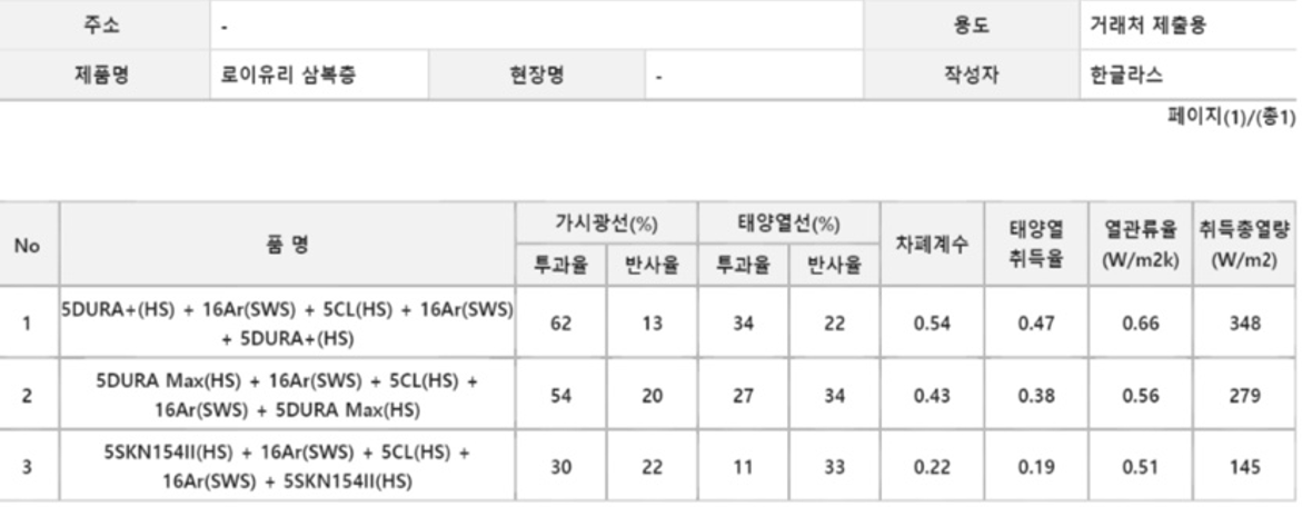 시스템 창호 3중유리 성능확인서를 받았는데요
