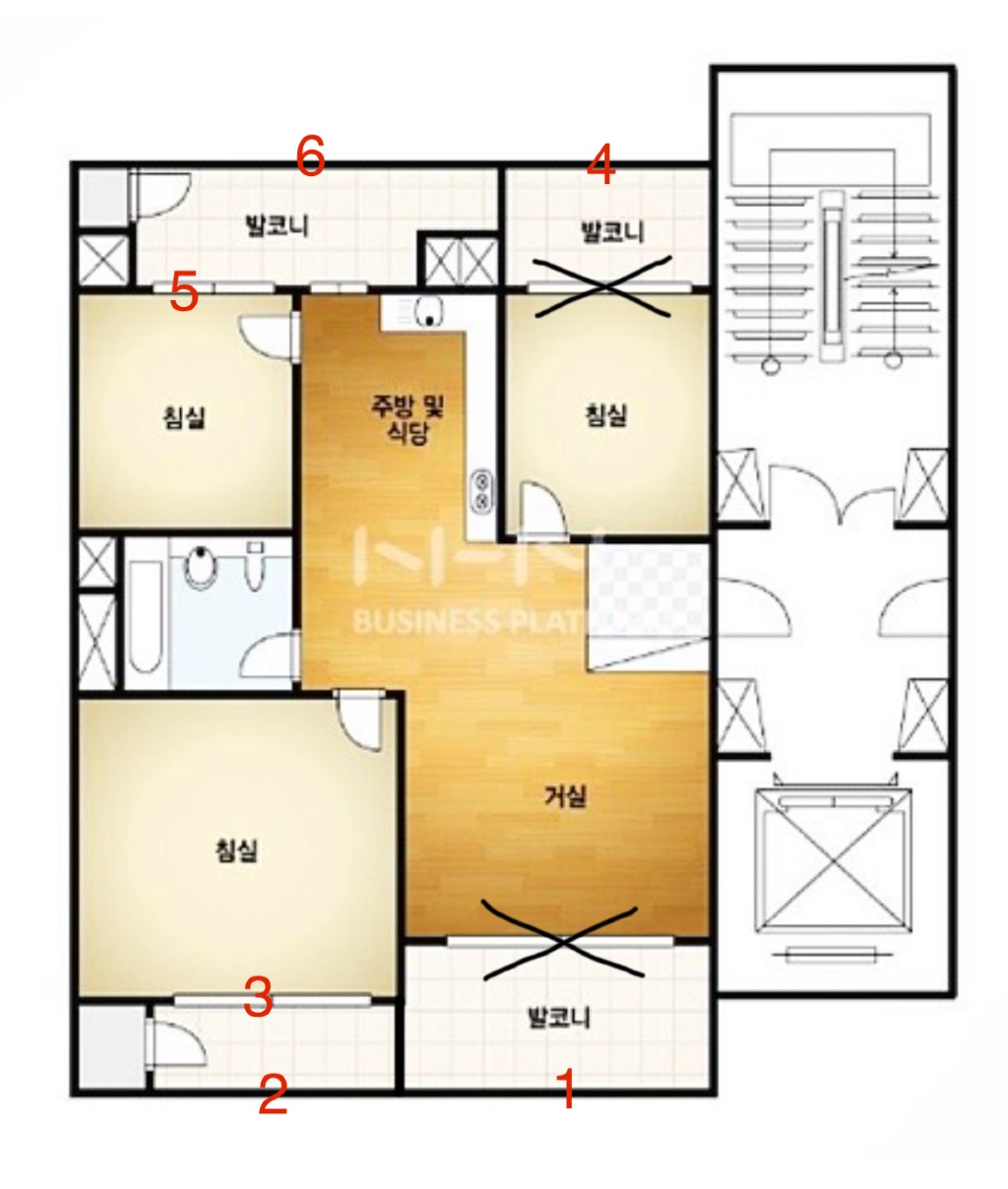 첫 번째 사진은 제가 살고 있는 아파트 평면도이고, 두 번째 사진은 KCC 홈페이지에서 가져온 창호 이미지입니다.