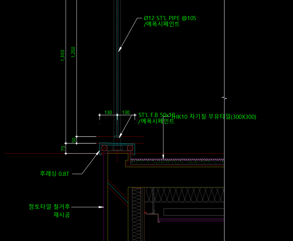 두번째는 두겁을 스틸플레이트로 제작하여 철제두겁에 난간을 용접 고정하는 방식입니다.