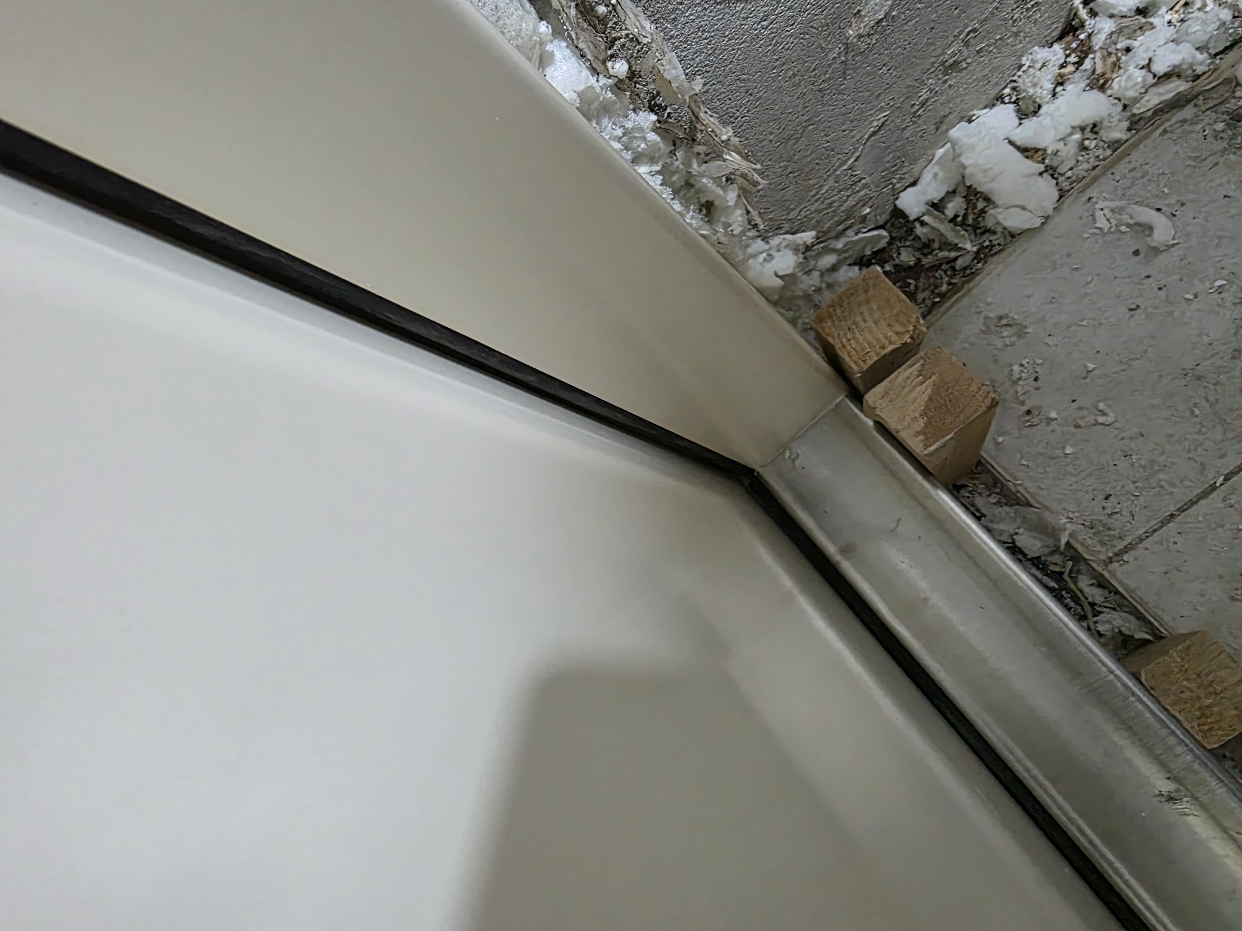 이번에 주택 방화문 설치를 하다가 폼충진까지 완료했는데 손잡이쪽 하부 문 모서리부분이 문틀패킹에 닿지 않아 문틀 손잡이쪽 옆면과 하부 폼 절단 후 문틀 아래 모서리 분을을 살짝 앞으로 당겨 쐐기로 고정해논 상태입니다.