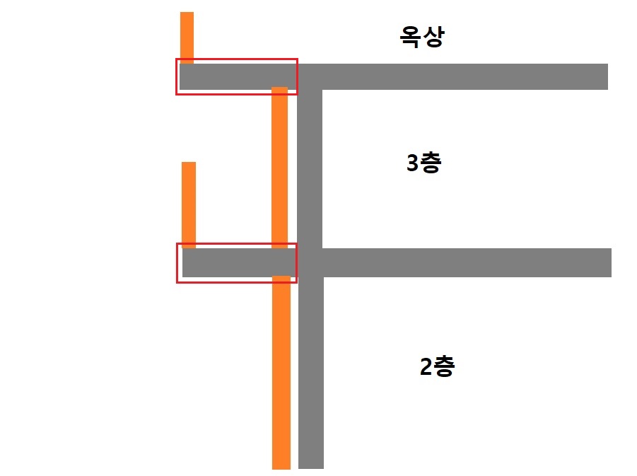 2층과 3층 사이에 있는 튀어나온 부분(빨간색 원 1번)을 철거해도 괜찮을지