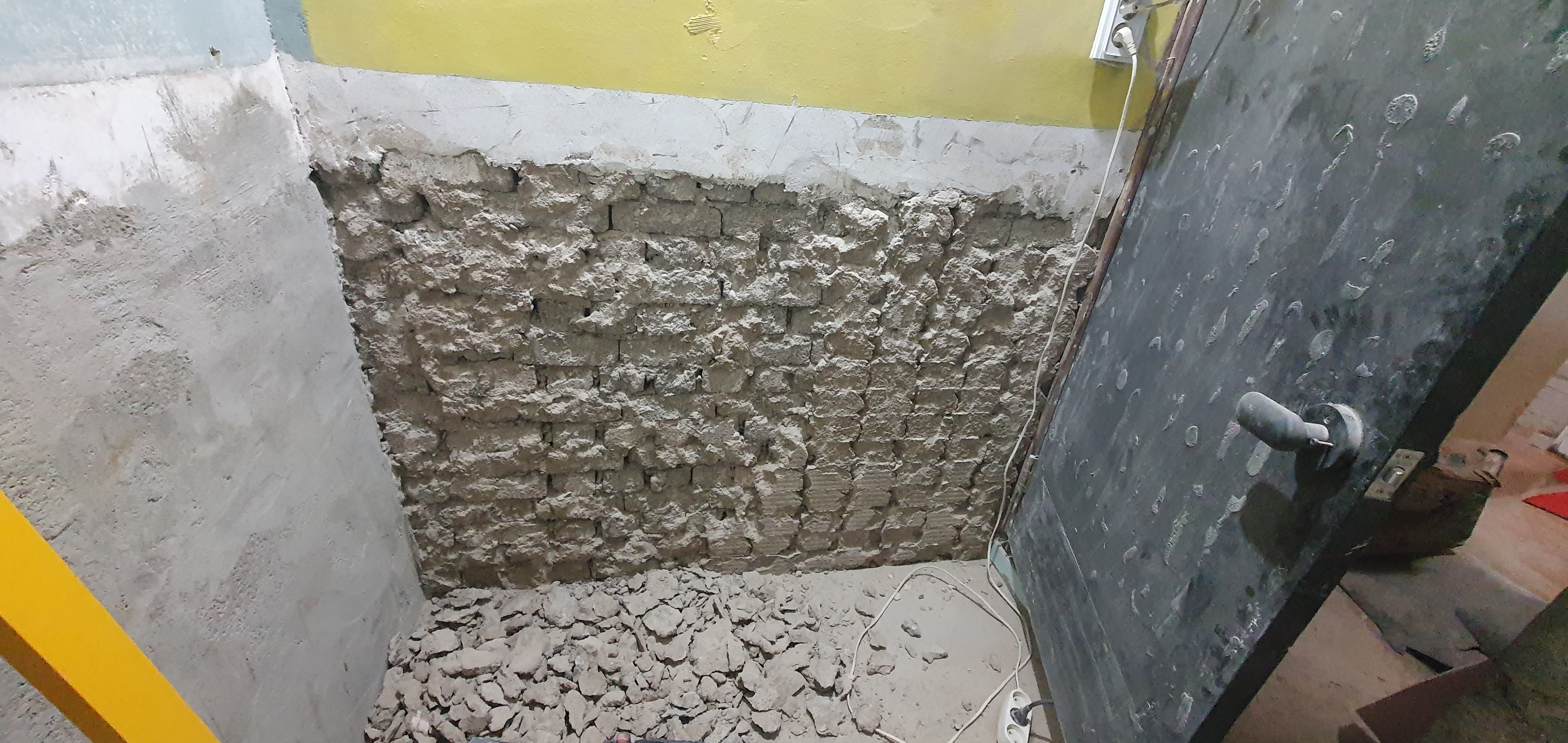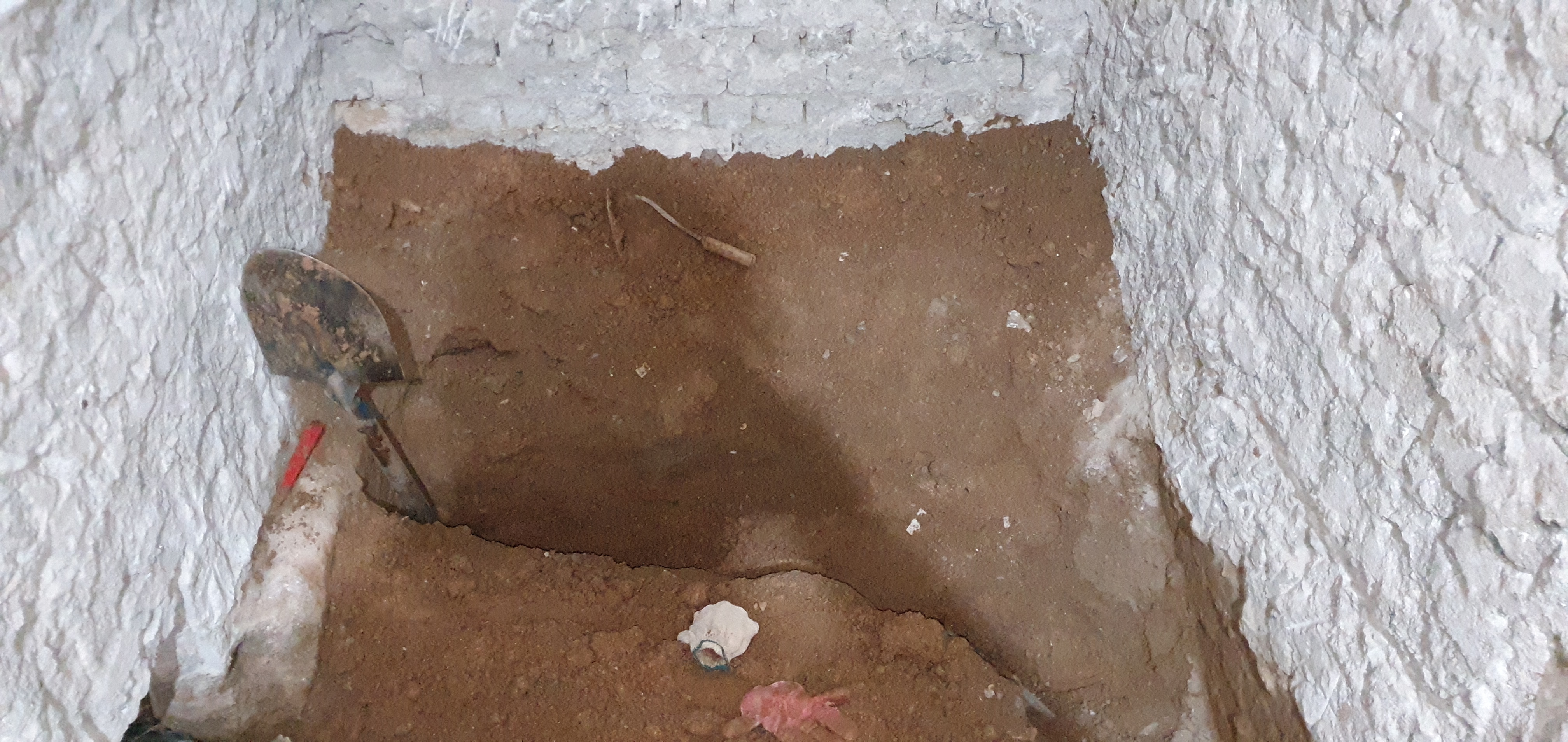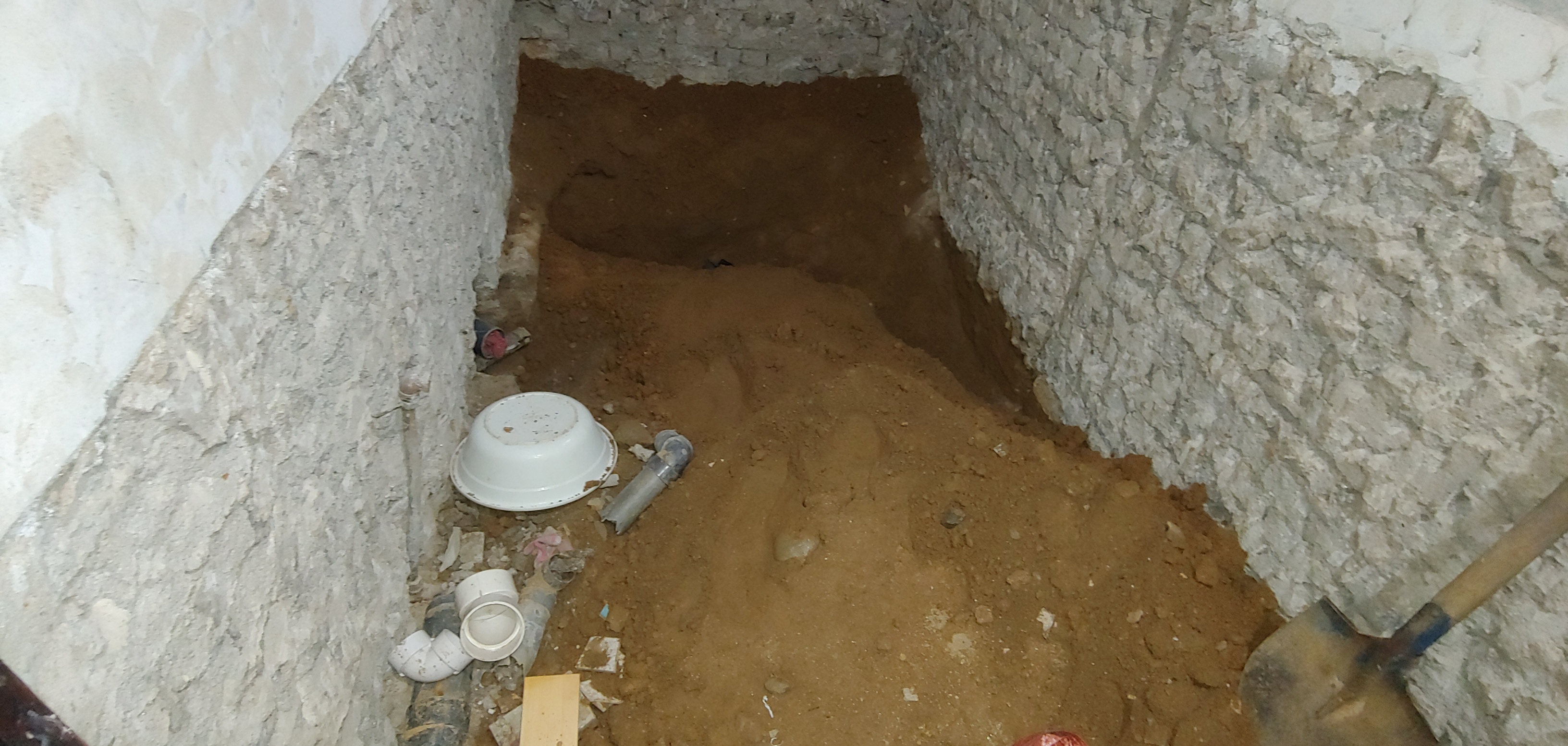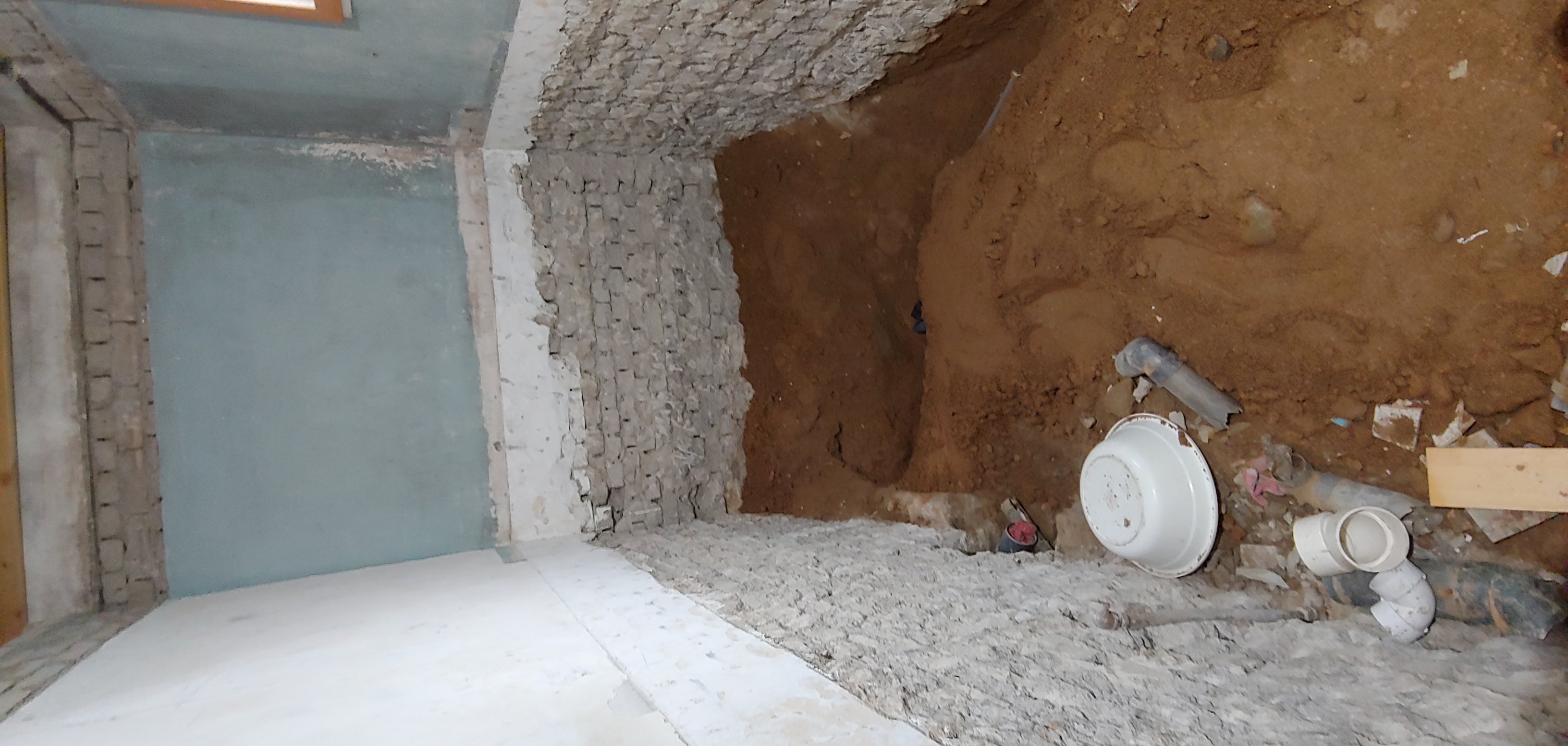 바닥 타일을 뜯으니 흙이 나옵니다.
