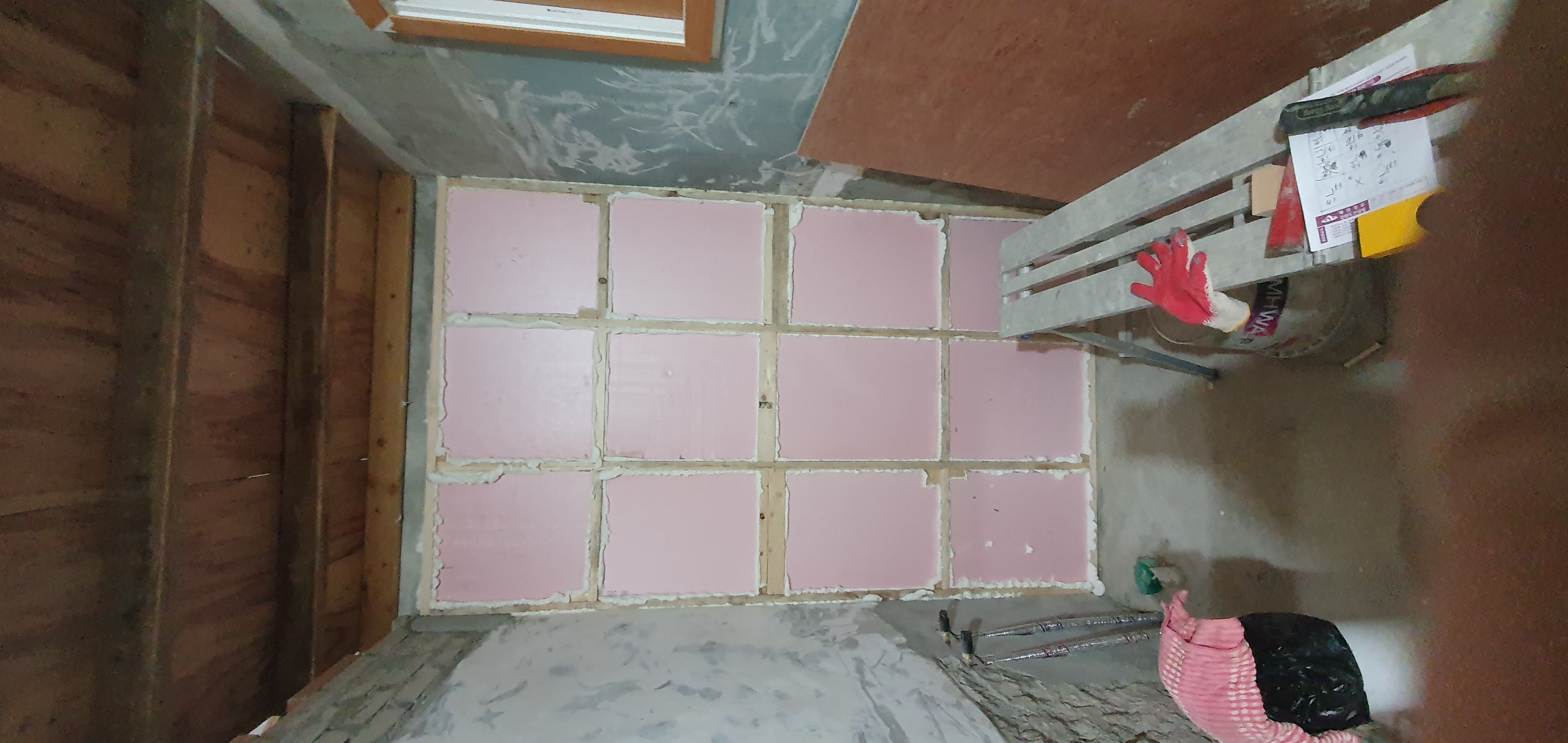 2. 바닥의 구성은... 먼저 흙 다짐을 하시고, (공간이 좁아서 람마 같은 것을 빌려서 하시는 것이 좋습니다. 안되면 햄머로라도 쳐주세요) - 비닐 -압출단열재 - 레미탈 - 방수층 - 난방배관- 레미탈 - 쭈꾸미 - 타일