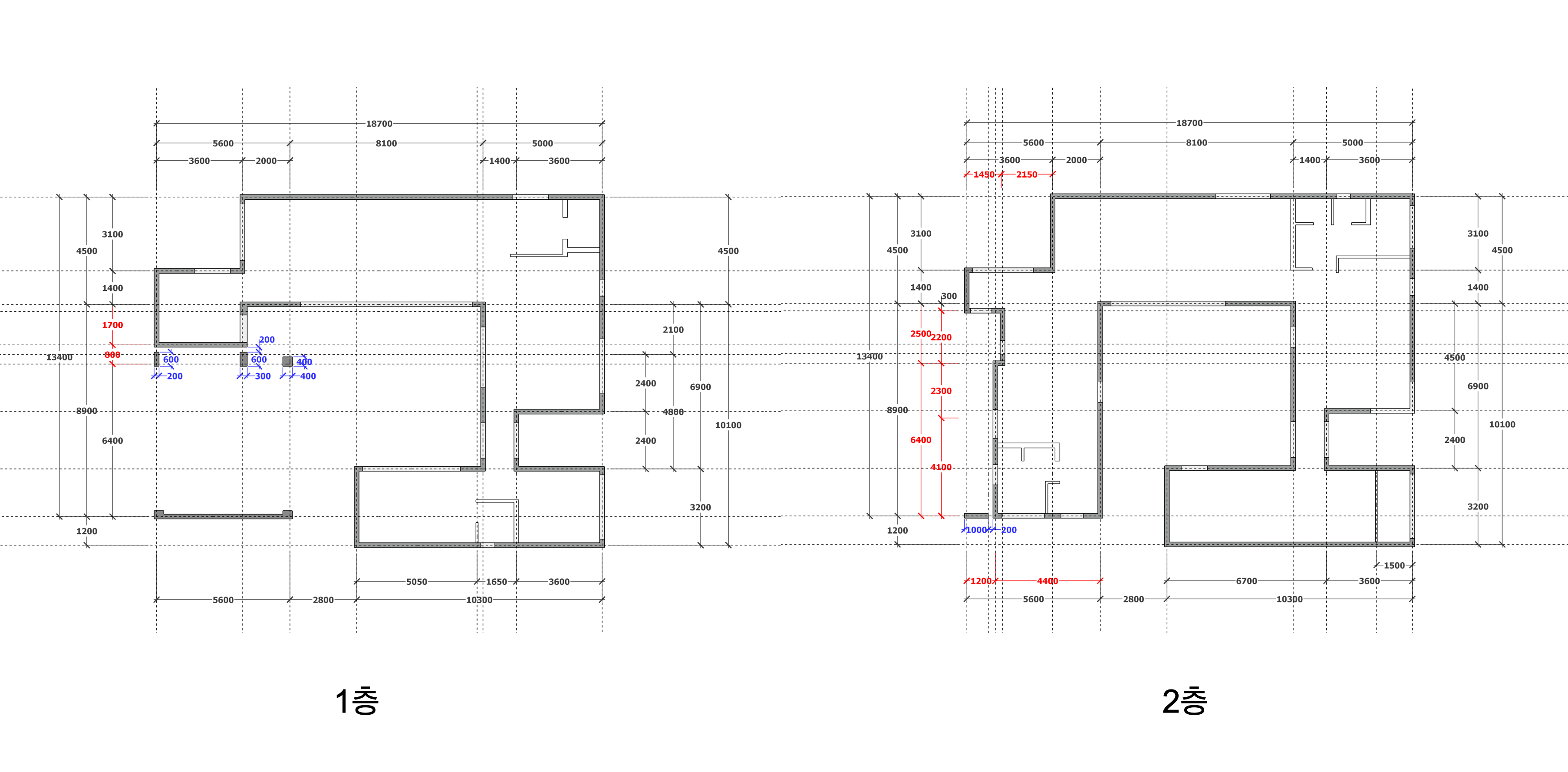 가. 모듈에 대한 절충을 하는 방법이 있습니다. 디자인을 알 수는 없으나, 집 전체를 이지블럭 모듈로 변경하는 것은 비용과 시간이 많이 필요로 합니다. 그러므로 벽면의 큰 구간만 모듈로 가고, 나머지 구간은 이지블럭의 손실이 있더라도 지금의 치수를 유지하는 방식입니다.