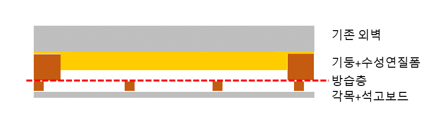 2. 위와 같은 경우 방습층 시공은 기둥-수셩연질폼-아이소핑크 맞닿는 사이를 방습테이프로 붙여주면 될까요?