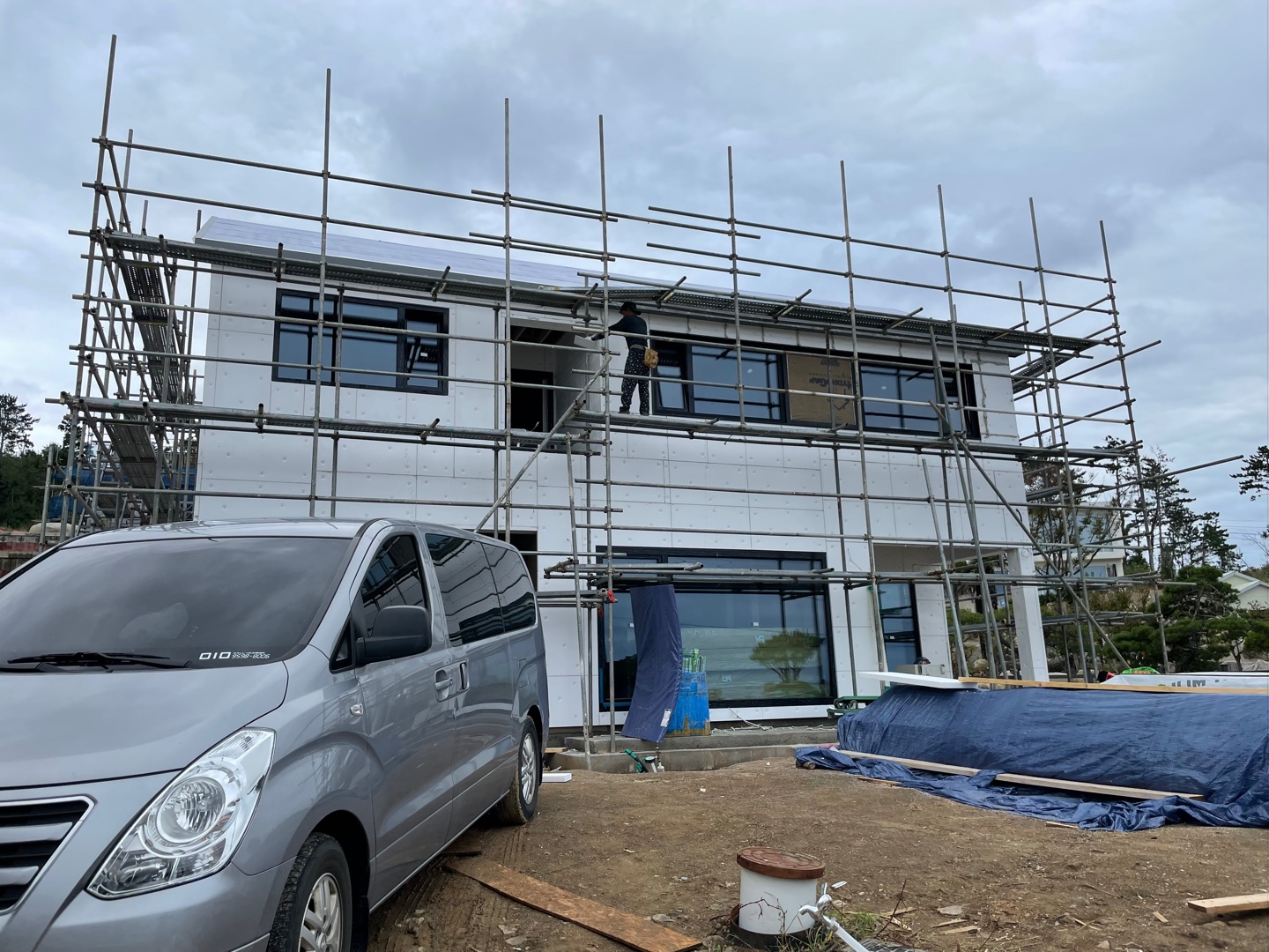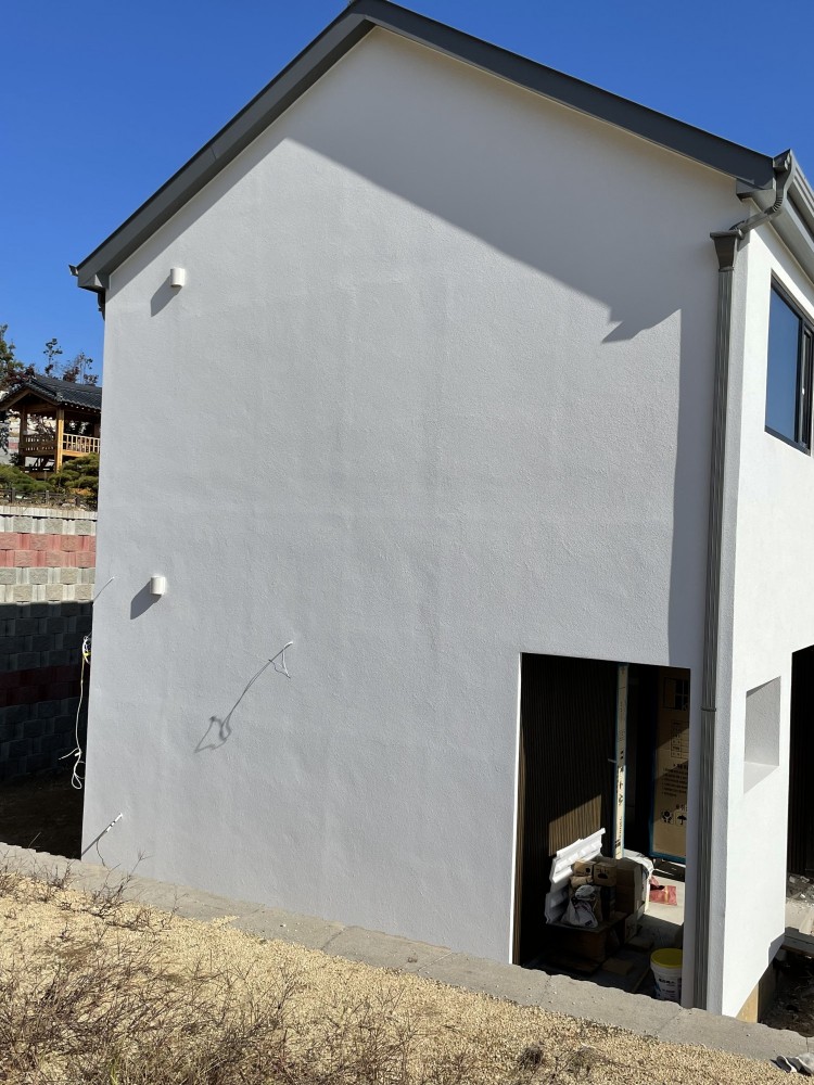 외벽을 스타코플랙스(USA제품) 노바 화이트 컬러로 마감했습니다.